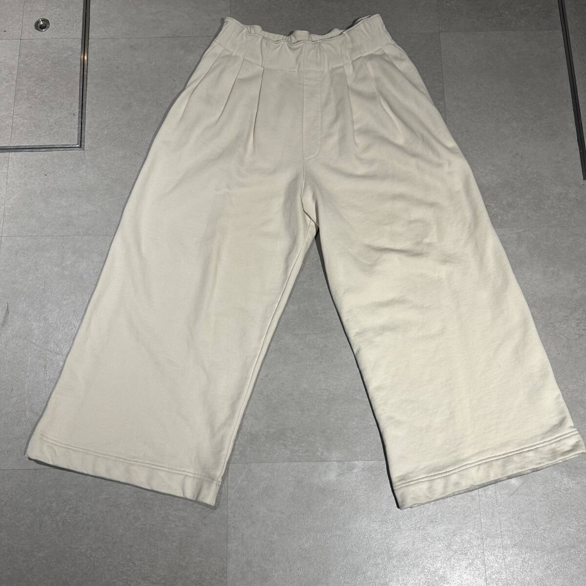 ワイドなシルエットのスウェットパンツになります。
