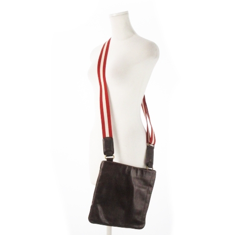 バリー BALLY ショルダーバッグ レザー 革 クロスボディ ロゴ型押し 焦げ茶 ダークブラウン /CK23 ■GY18 メンズ