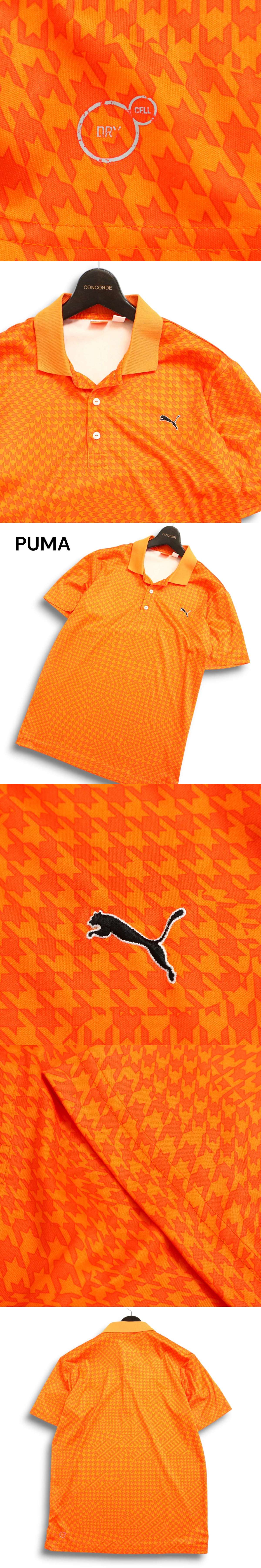 PUMA プーマ 春夏 DRY CELL 吸汗速乾 ロゴ刺繍★ 千鳥格子 半袖 ポロシャツ Sz.L メンズ トレーニング ゴルフ オレンジ
