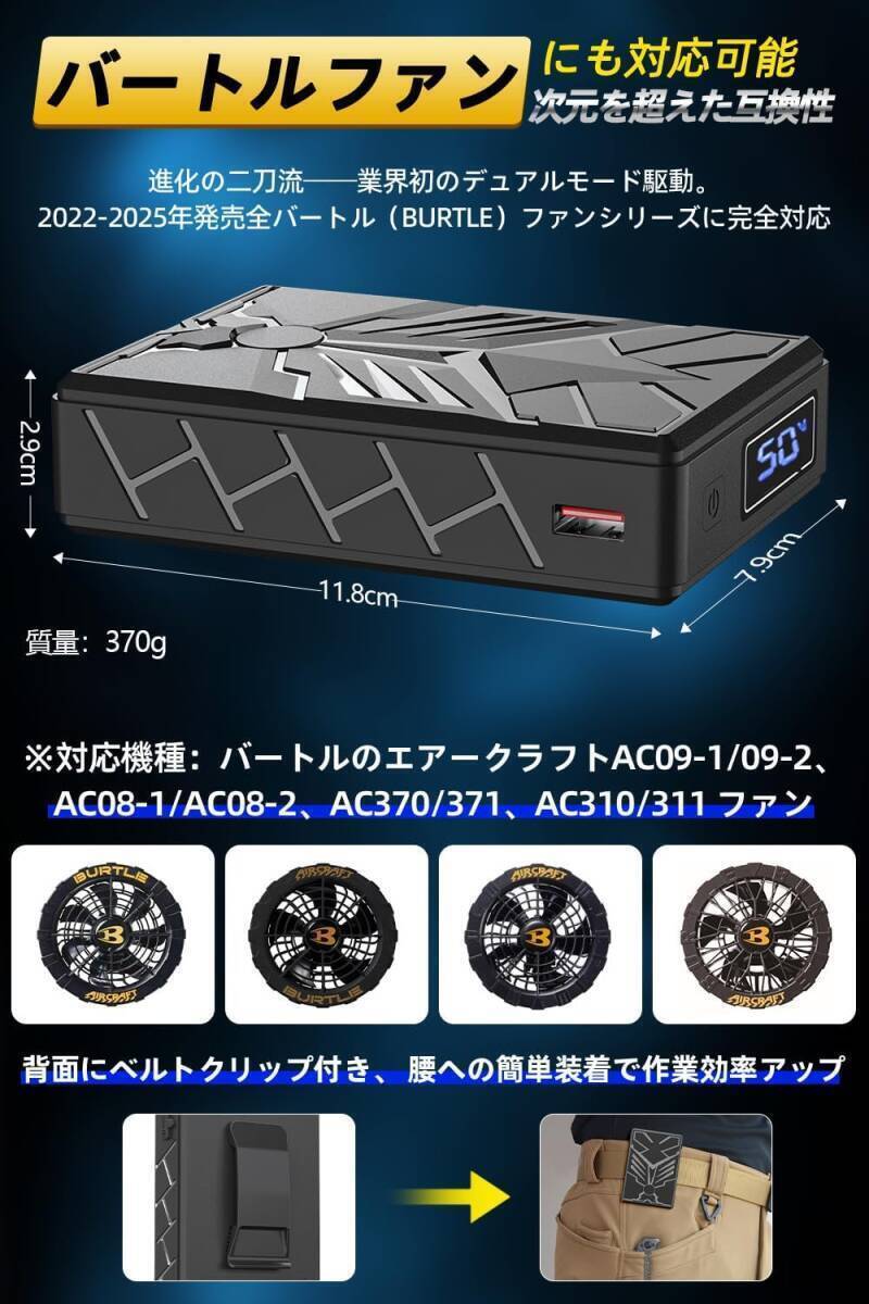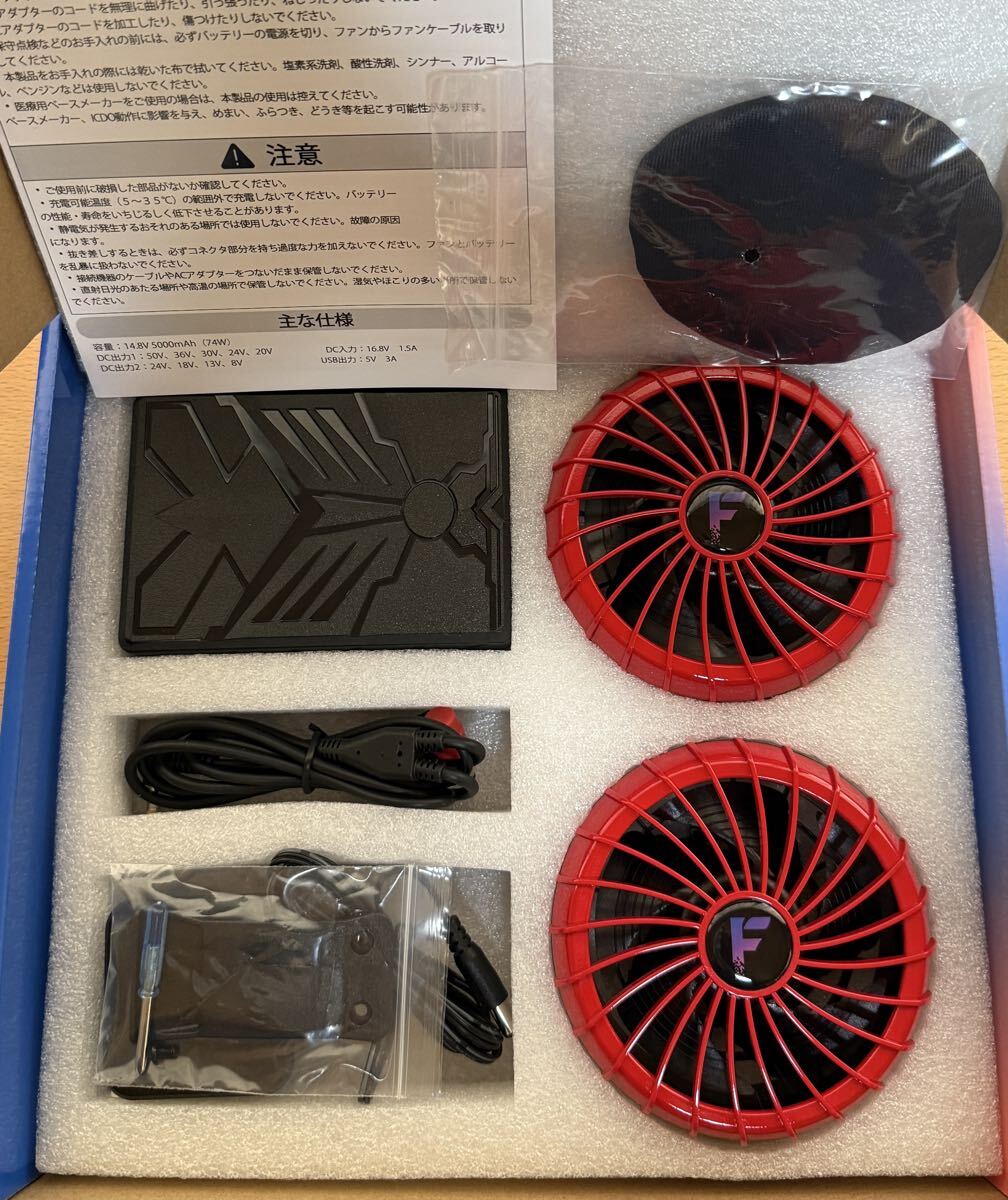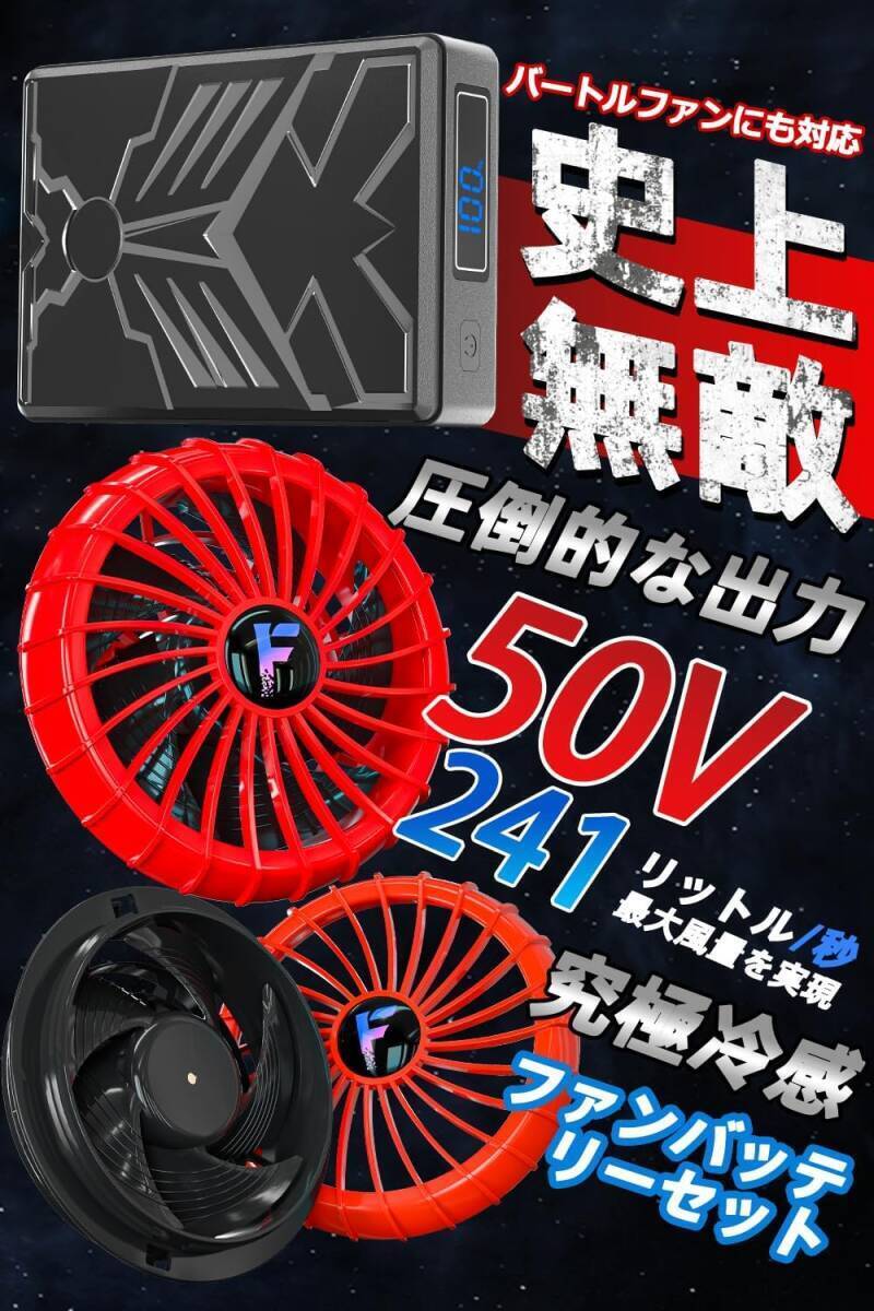 【新品未使用】50V 高出力 ファンバッテリーセット バートル ファン使用可能 大容量 2025年版 空調服用 90mm穴径 BURTLE ファンカバー赤