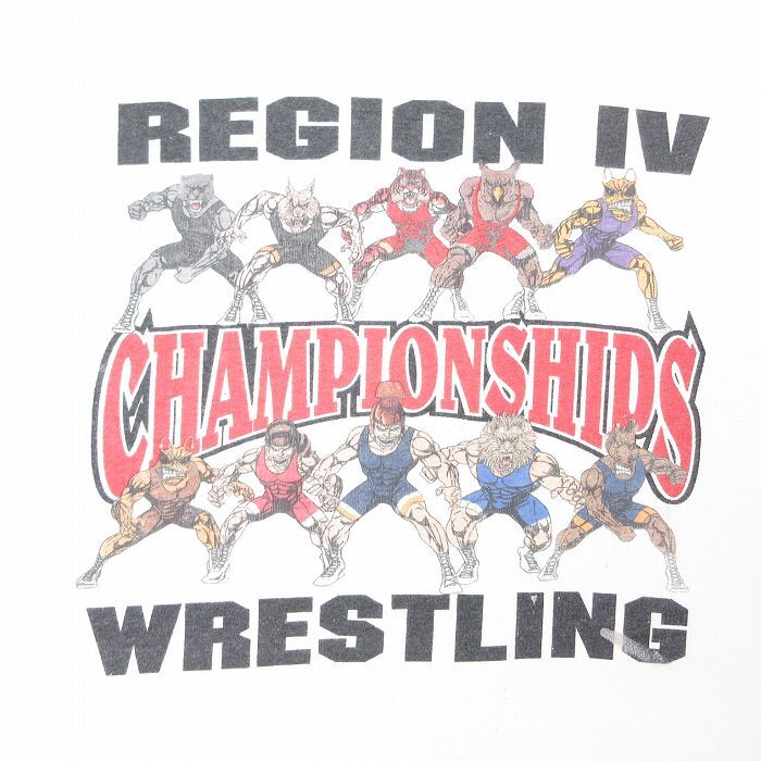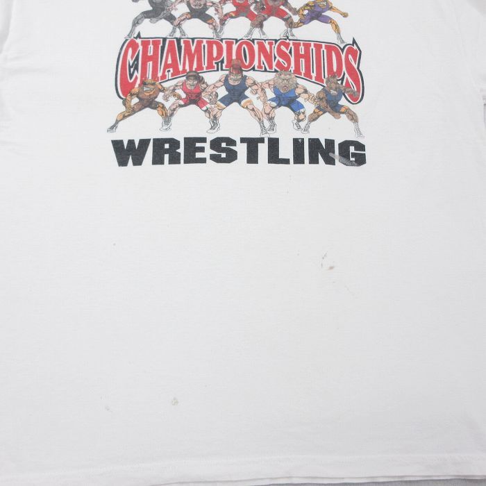 【商品名】 XL★古着 ヘインズ 半袖 ビンテージ Tシャツ メンズ 00年代 00s レスリング 大きいサイズ コットン クルーネック 白