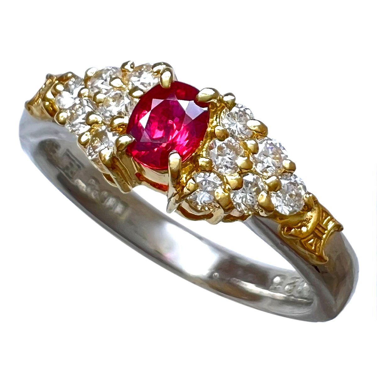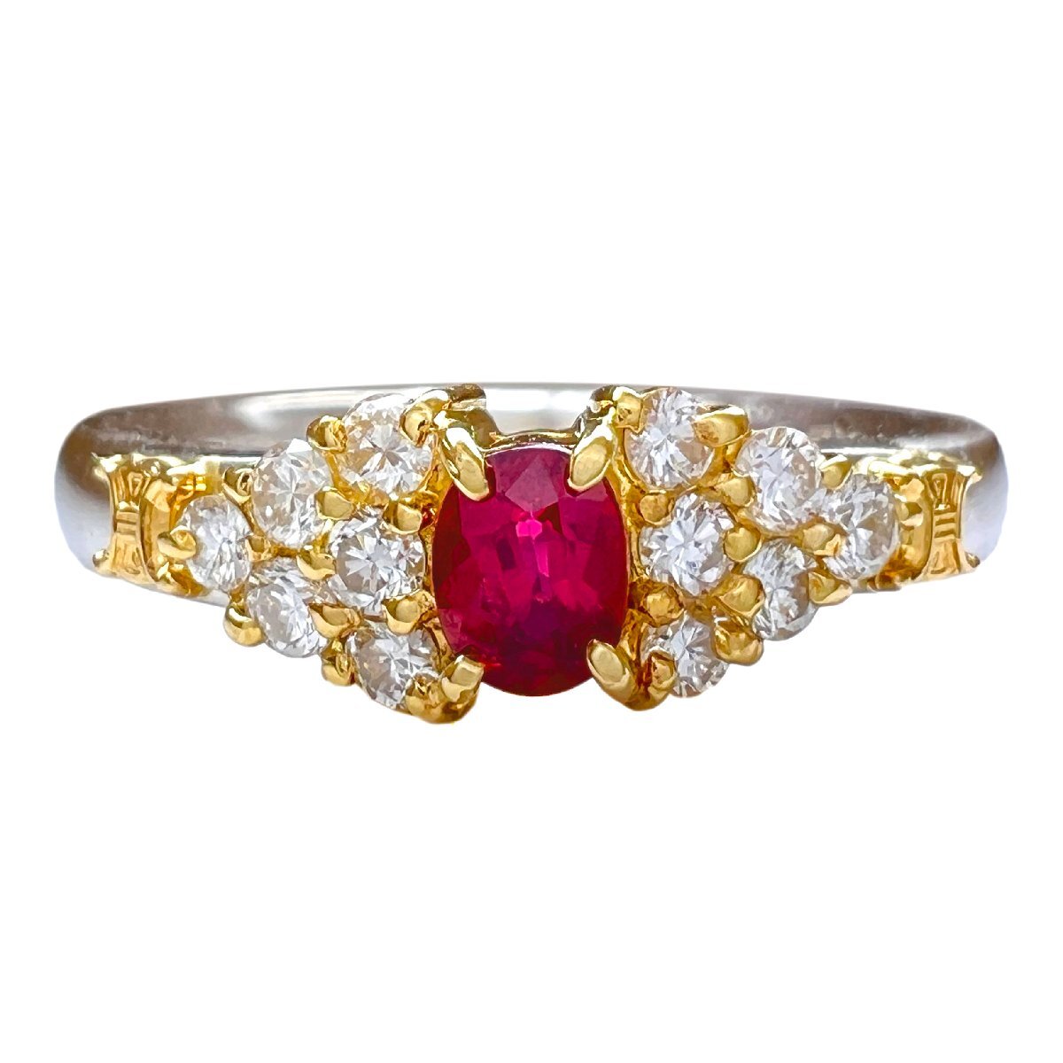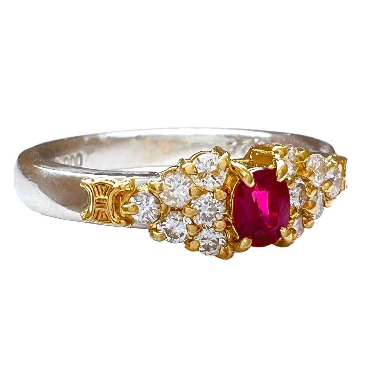 商品名 | CELINE セリーヌ リング ルビー 0.25ct ダイヤ 0.25ct ヴィンテージ Pt900 750 K18 YG コンビ 7号 指輪 |