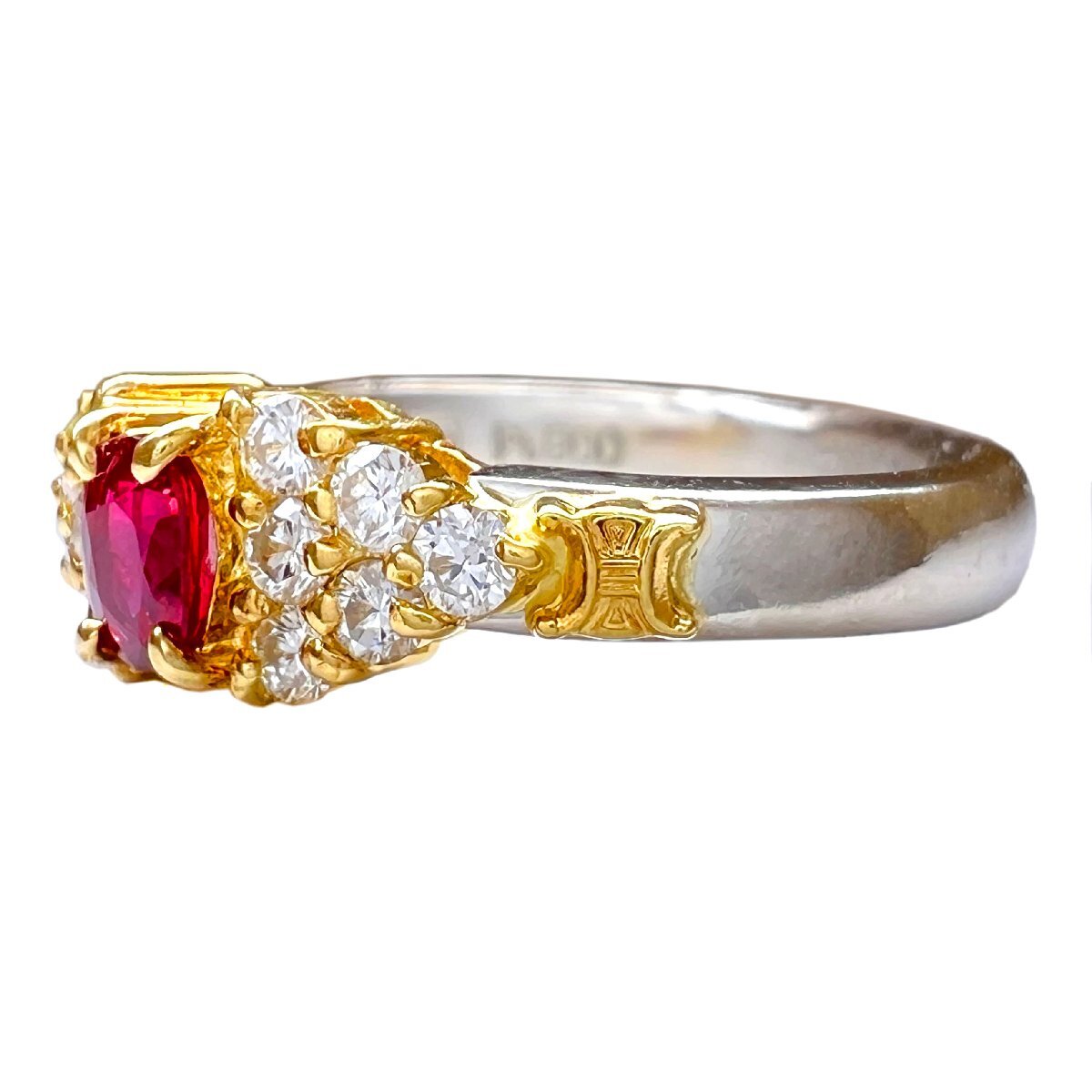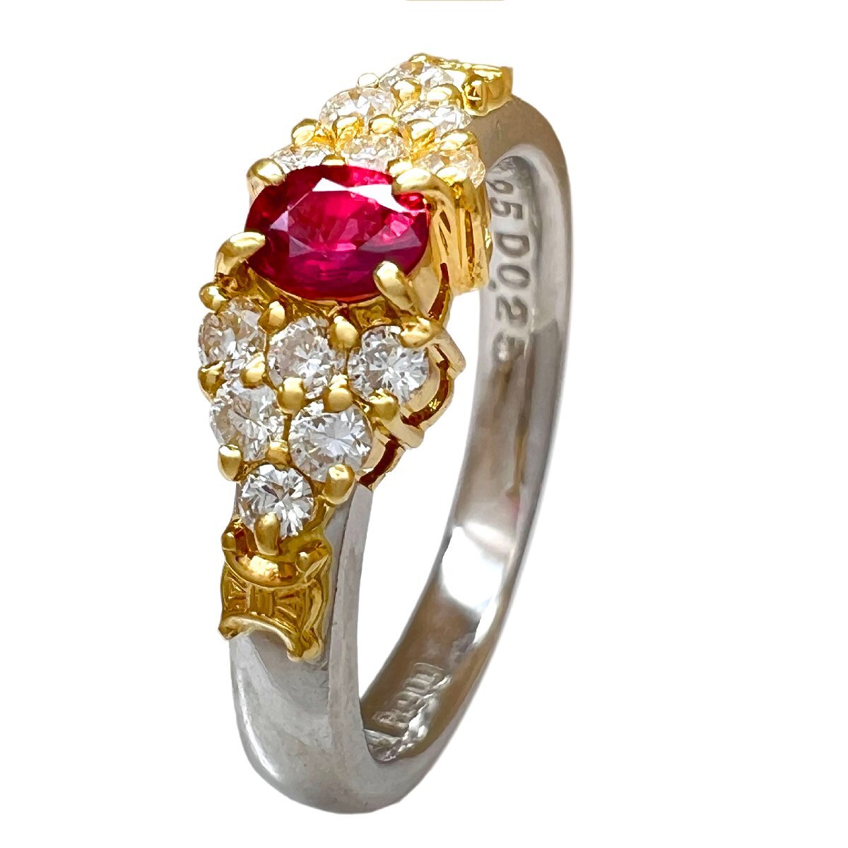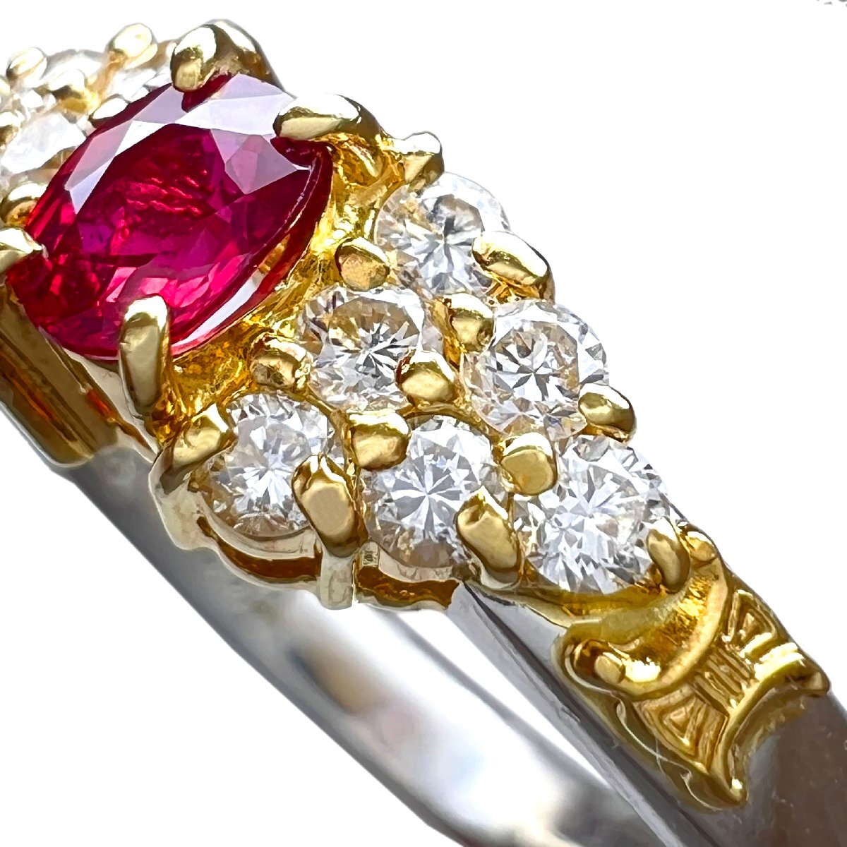 商品名 | CELINE セリーヌ リング ルビー 0.25ct ダイヤ 0.25ct ヴィンテージ Pt900 750 K18 YG コンビ 7号 指輪 |