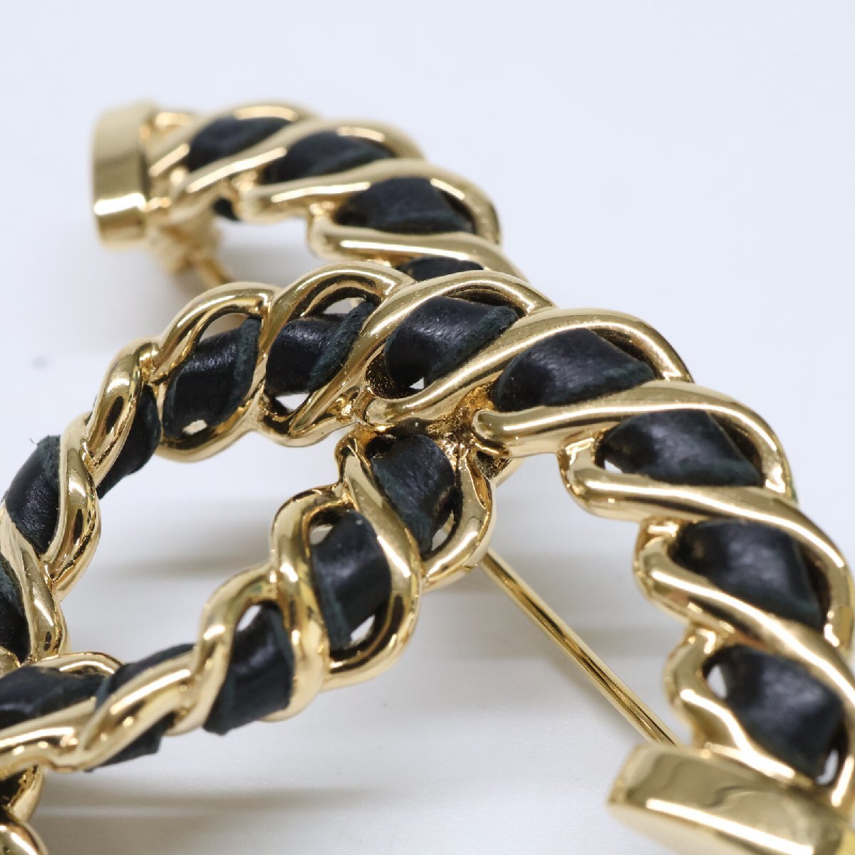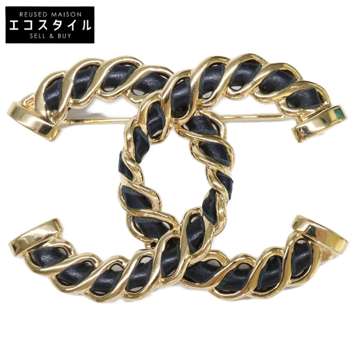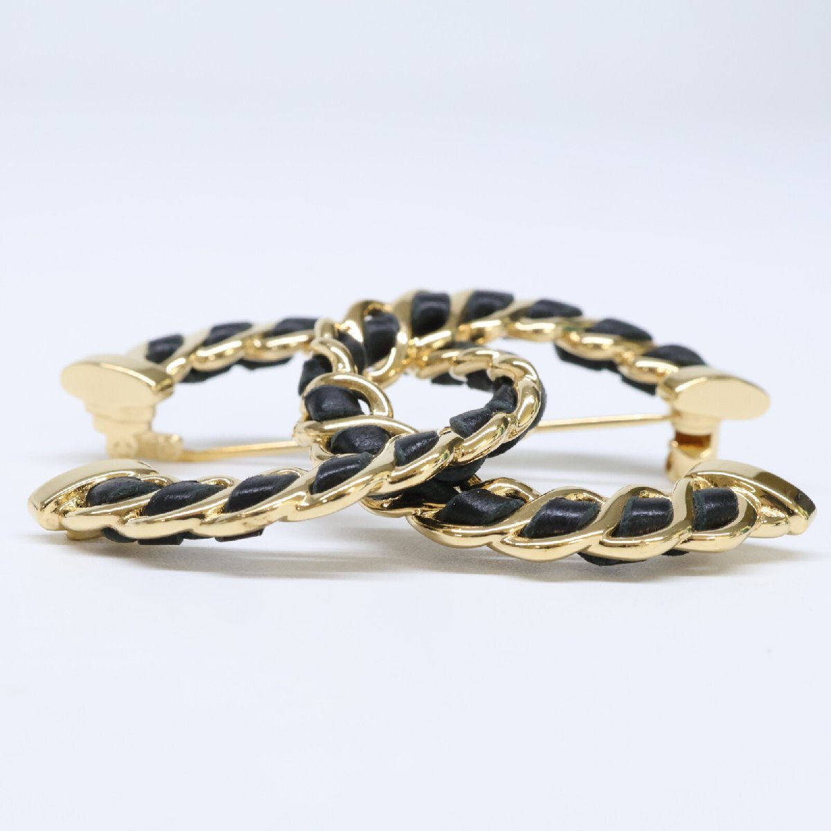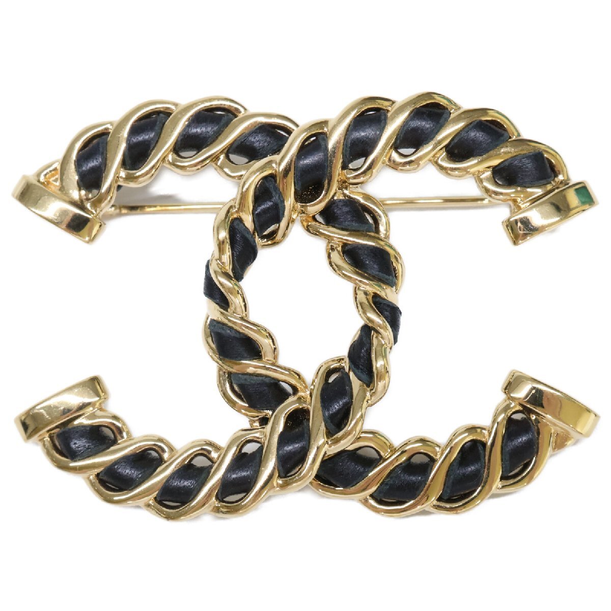 美品 CHANEL シャネル I24K ココマーク チェーンデザイン ブローチ ブラック/ゴールド レディース