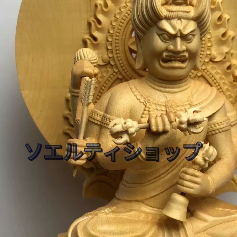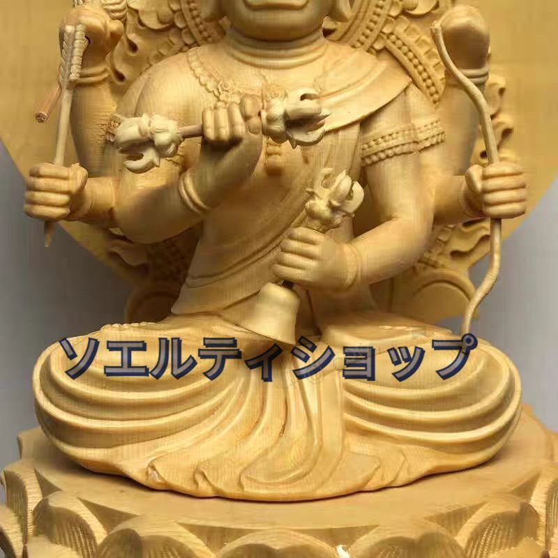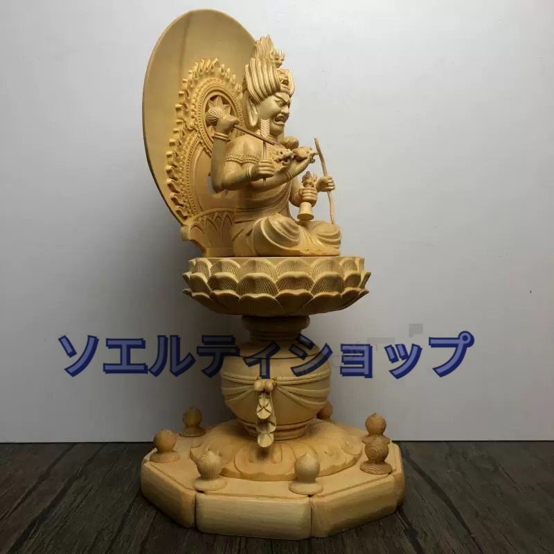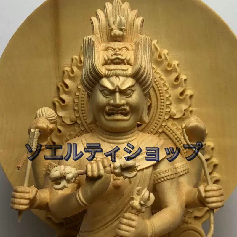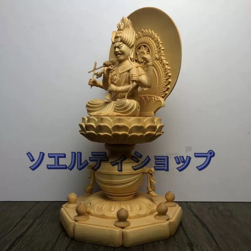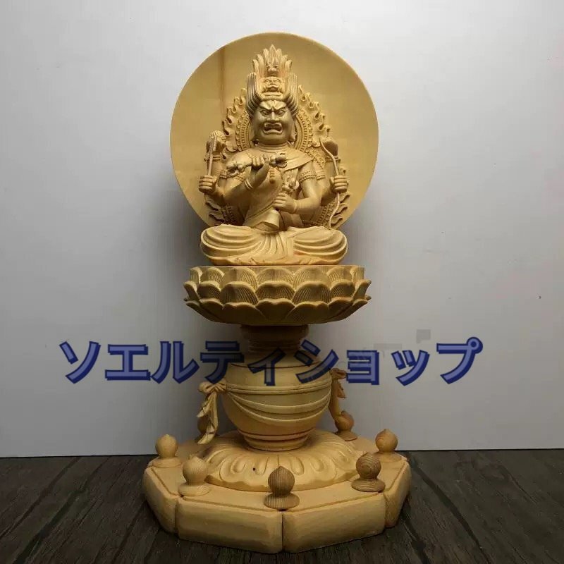 至極の木工 総檜材 木彫仏像 仏教美術 精密細工 仏師で仕上げ品 愛染明王像 高さ31cm