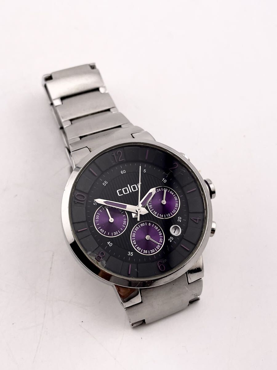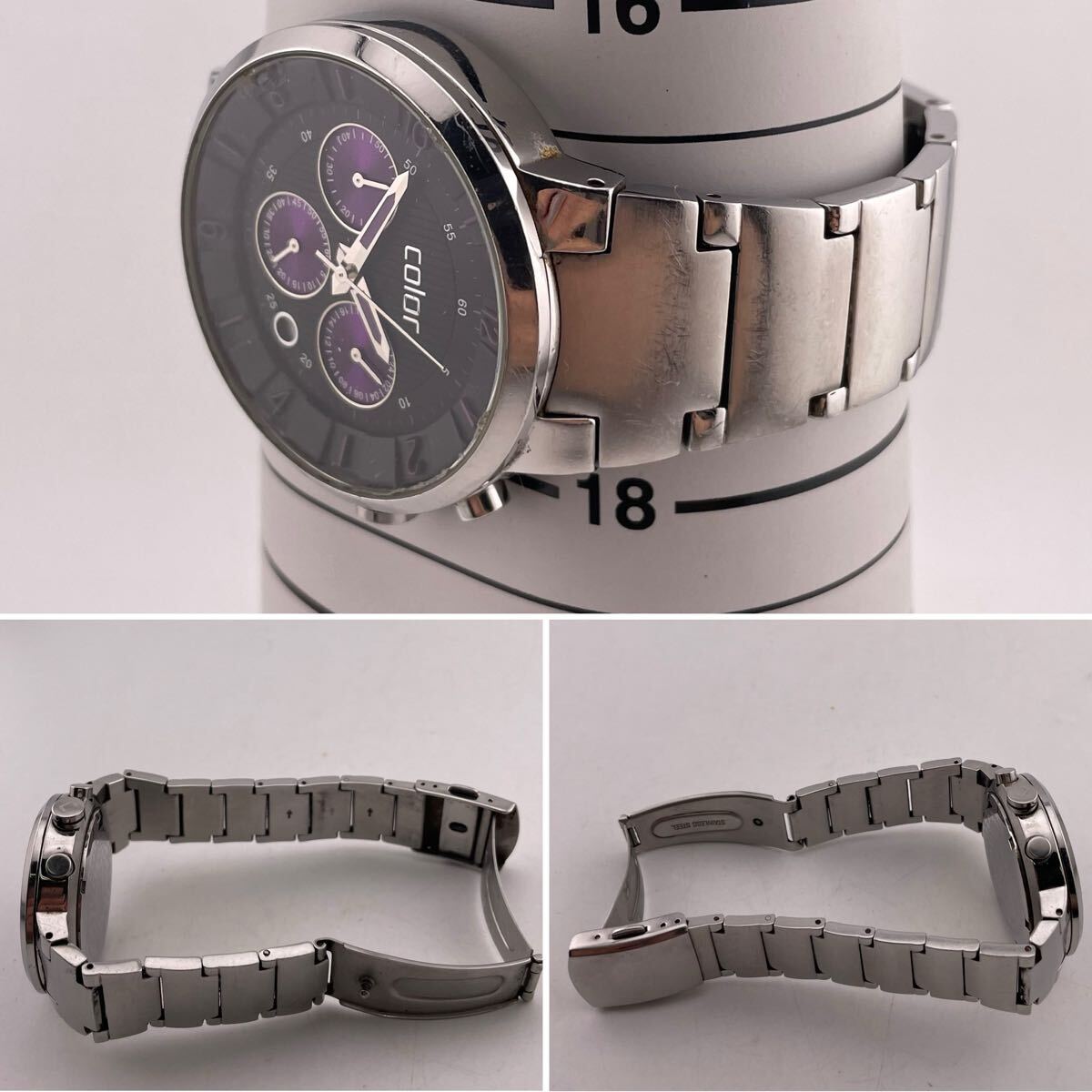 color カラー CR011M-BK1 腕時計 クロノグラフ クォーツ ブラック × パープル