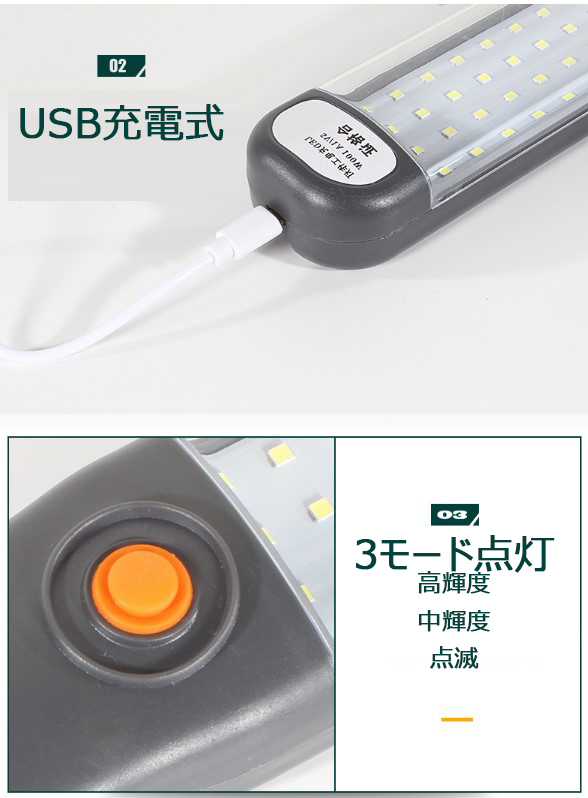 ワークライト LED 充電式 作業灯 100W マグネットフック付き 警告灯 懐中電灯 3モード点灯 高輝度