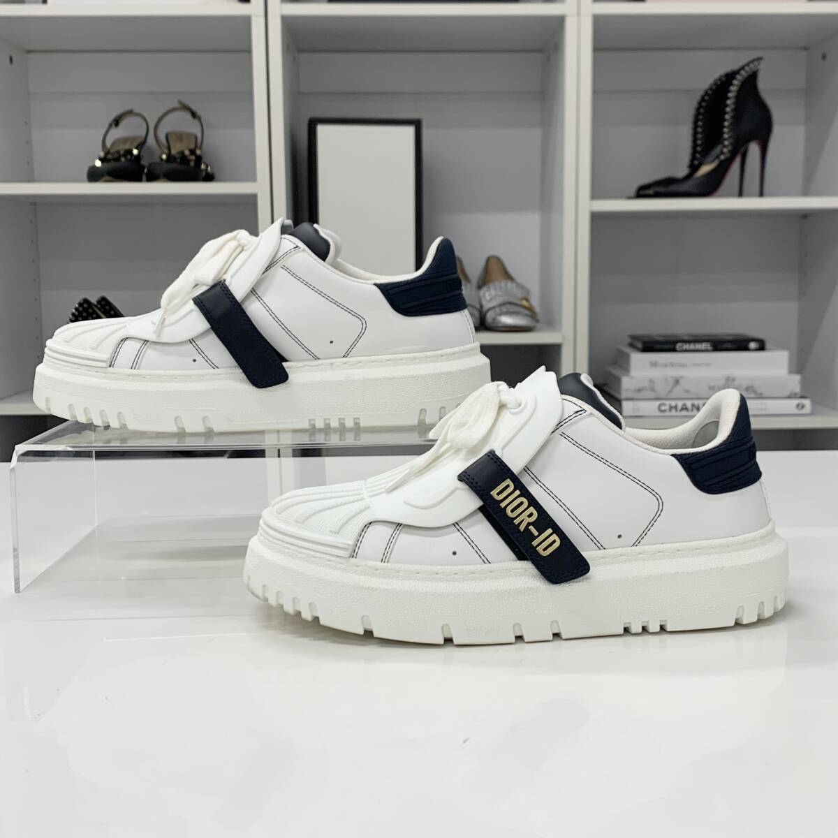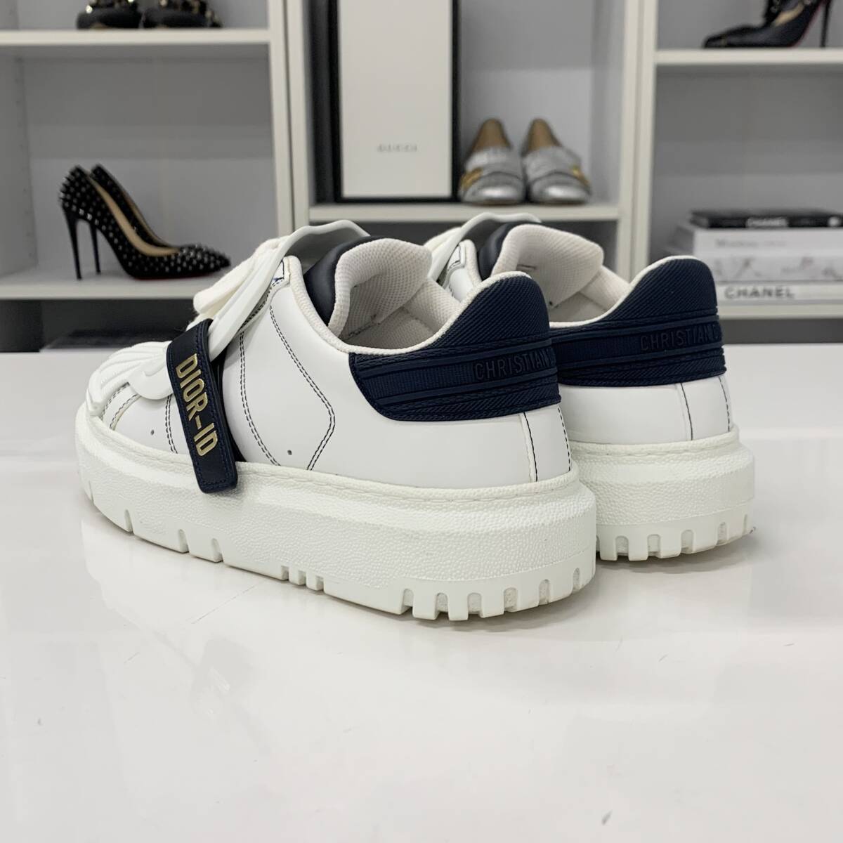 クリスチャンディオール Dior-ID ロゴ レザー ラバー ベルクロ スニーカー ホワイト