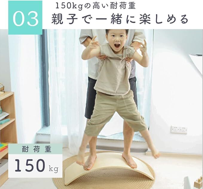 【大人も使えるバランスボード】弊社のバランスボードは耐荷重が150kgですので、お子様だけでなく大人の方にもヨガやフィットネスとしてお使いいただけます。もちろん、お子様と一緒に乗っていただく事も可能です。