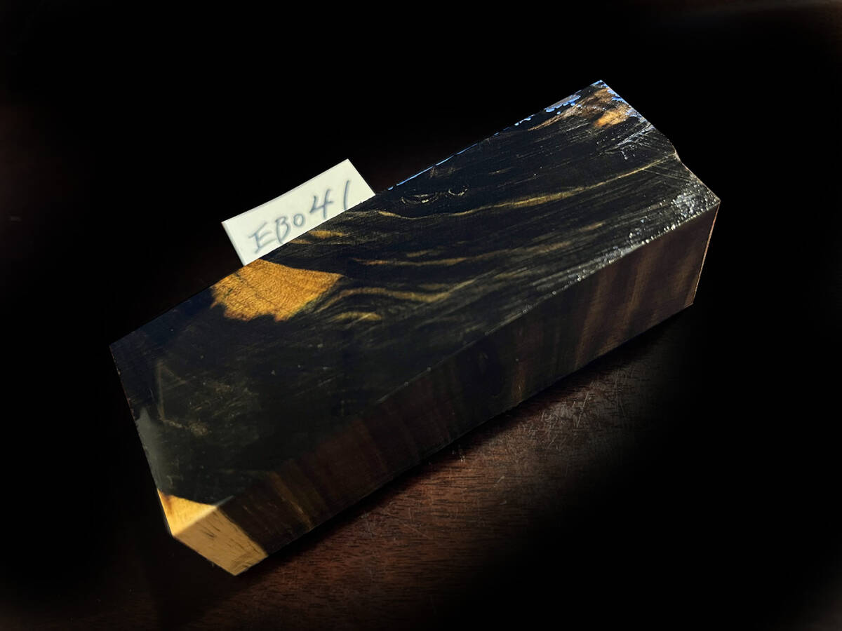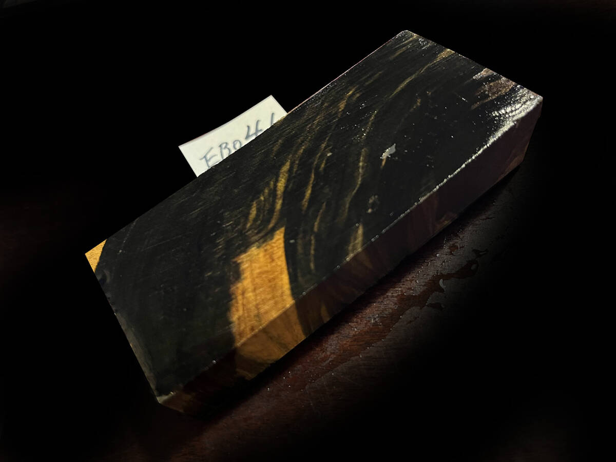 ごらんくださりありがとうございます。 こちらはエボニー(黒檀)の非常に珍しい杢材です。 エボニー(黒檀)は、カキノキ科の植物なので、 黒柿のクジャク杢の様な杢の材が、ごく稀に取れる事があります。 エボニー(黒檀)のクジャク杢は、 ダークグリーングレーのうねりのある杢や、黒・ブラウン・白のカラーが入り混じったり、 縮杢が出たりと物凄い変化に富んだ材です。 加工後の質感も黒檀なので高級感のある緻密な仕上がりになります。 本当に美しく、殆ど市場に出ることは無い部位の材です。 最上級の工芸品などにいかがでしょうか。 【サイズについて】 長さ 約92mm 幅 約37mm 厚み 約19mm ※多少の誤差はご容赦ください 【コンディションについて】 ※画像はバールの状態がよくわかる様に水引きをして撮影しています。 ※細かいヒビや色、模様を画像でよく確認してから納得の上ご入札を、お願いいたします。 ※お使いのPC環境、携帯端末によって色合いが異なる事がありますのを ご了承の上入札をお願いいたします。