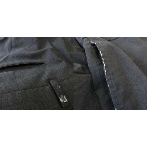【仕様】ジャケット シングル 背抜き センターベント スリーボタン パンツ ジップフライ ダブル仕立て トラウザー センタープレス