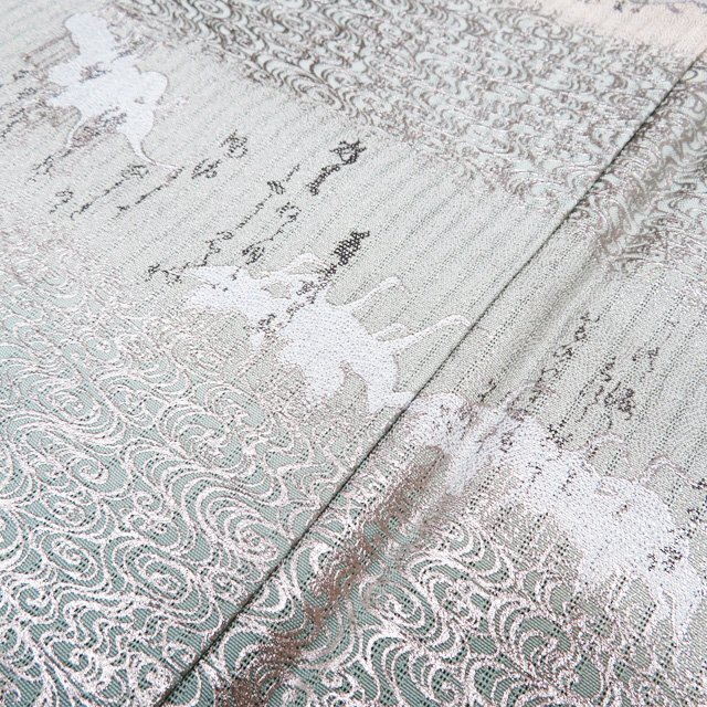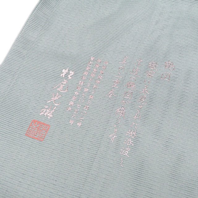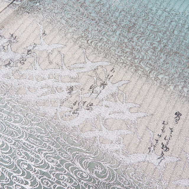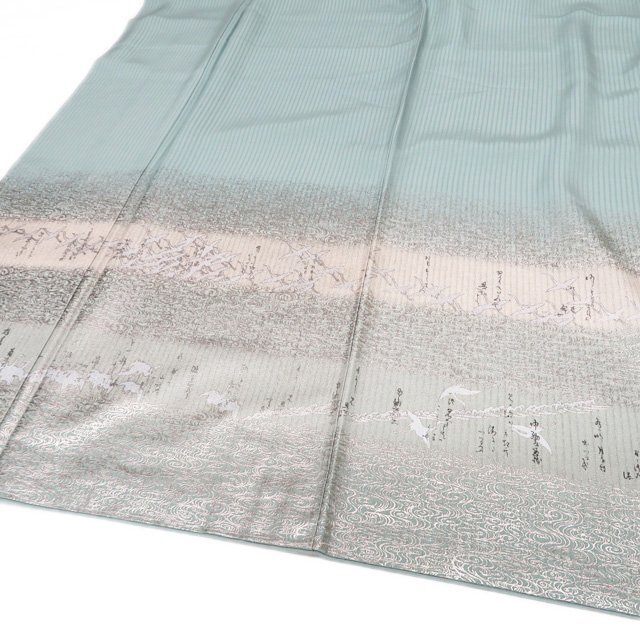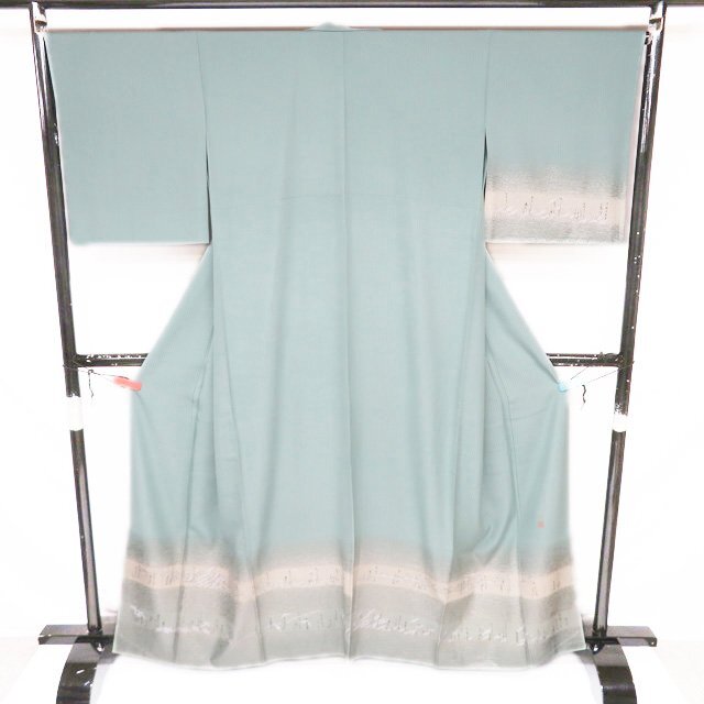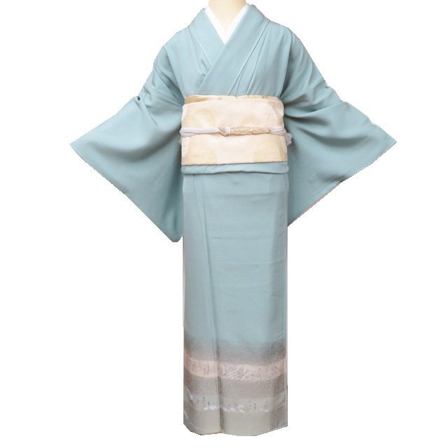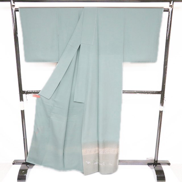 丈162cm(+8) 裄68cm(+1) 袖丈49cm(+7.5) 前幅25.5cm 後幅32cm ※サイズのお直し、承ります。 (身丈のみ、身幅のみのお直しは承っておりません) ※身丈は肩から測っております。 ※()内は※()内の数字はお直しで直せる長さを示しています。お仕立て直しの場合は胴裏を付け替えるため、さらに長く直せる場合があります。詳しくはお問い合わせください。 単位:cm 素材 正絹 商品ランク A ●着用時期 10月~5月(+-2週間) ●着用シーン 披露宴、パーティー、お出掛け、式典など ●お色 薄緑色 銀 未使用の美しいお品物です。 為書きがございます。 少し保管臭が残っています。気になる方は購入をお控えください。 写真に写っている着物のみの販売で帯等の付属品はついておりません。 一部商品は実店舗・他サイトでも並行して販売しておりますので売り切れの際はご了承ください。 その他多数販売中 ki- | ||||||
