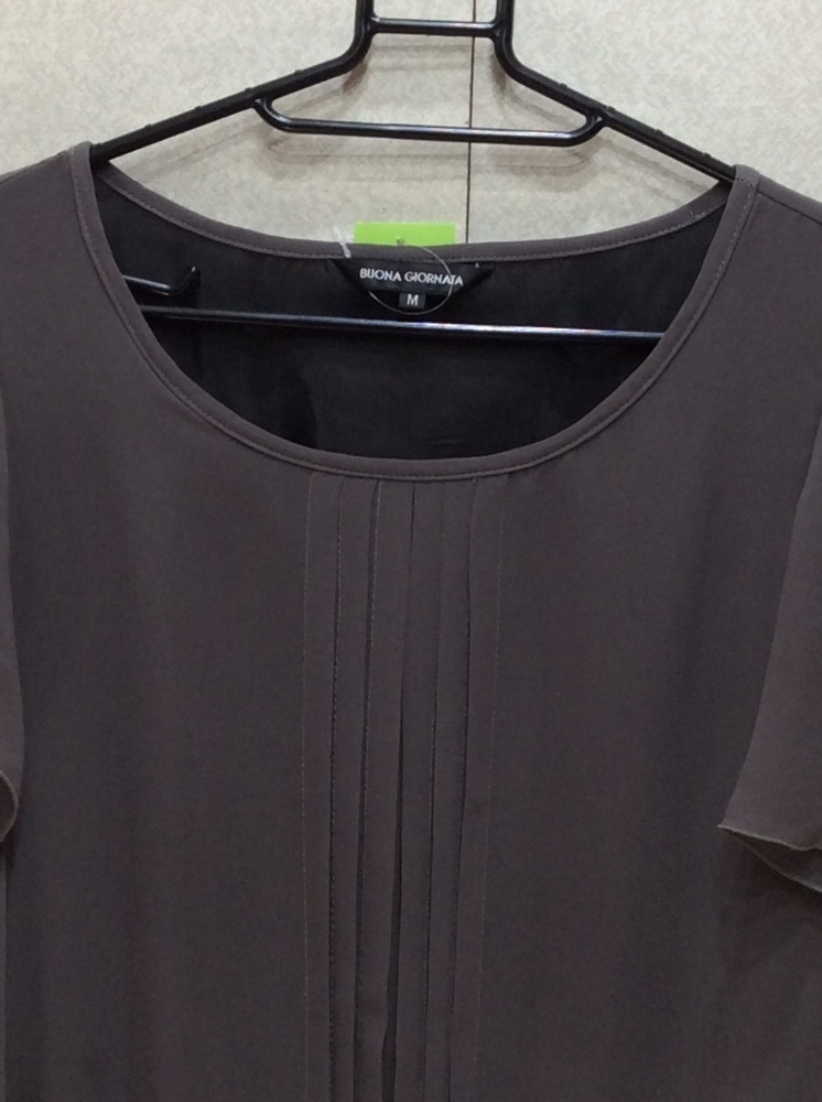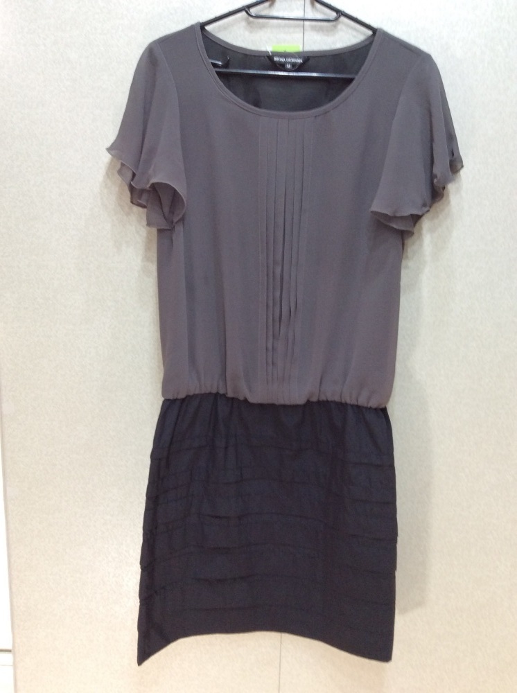管理番号:40^121802 ボナジョルナータ 切り替え半袖ワンピース 上グレー、下すみ黒ドット 表示サイズ:M 実寸(参考)