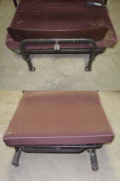 電動リクライニングベッド(Wファンクション)(1モーター) 中古動作品です。 仕様 ■素材: 本体:鋼(粉体焼付塗装)、MDF(プリント紙化粧繊維板)、PE、PP、PU、ABS サイズ・重量 ■本体: (約)W1,040×L1,940×H580mm / (約)39kg■マットレス: (約)W900×L1,900×t100mm■収納時: (約)W1,040×L700×H1,100mm■マット面高さ: (約)400mm■リモコンコード: (約)2m■電源コード: (約)2.7mマット内部:鋼(粉体焼付塗装)、ウレタン(プロファイル加工)、固綿、不織布 マット表面生地:ポリエステル(ストレッチ生地) グリップカバー:合成皮革■定格電源: AC100V(50/60Hz)■定格消費電力: 30W■付属品: マットレス、キャスター受け皿(4個)、グリップカバー(2枚)■安全使用荷重: (約)90kg以下 経年使用により傷、汚れ等がございます。 美品等をお求めの方は入札しないでください。 ご興味がおありの方は是非!! 写っているものがすべてです。 状態は写真でご確認くださいませ。 写真を良くご覧の上,商品説明に ご理解頂ける方のご入札を希望致します。 お色に関してはどうしてもデジカメでは出せない 場合がございますので、気になりましたら ご質問くださいませ。 新規・悪い評価が多い方の入札・落札はご遠慮願います。 (万が一入札・落札されましても、削除する場合がございます。) NC.NRでお願いいたします。 発送方法 引き取り限定 | |||