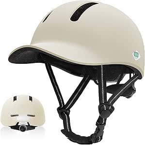 キャップ型 軽量 通気 耐衝撃 通学 通勤 サイズ調節可能 55-60cm サイクリングヘルメット 男女兼用 ホワイト HH0603