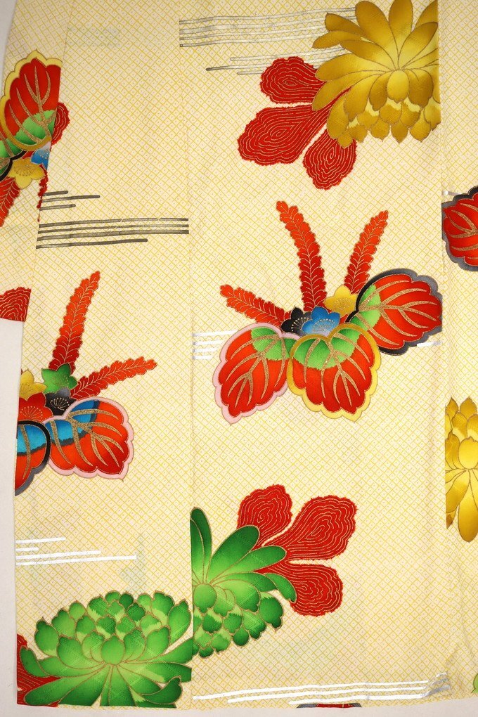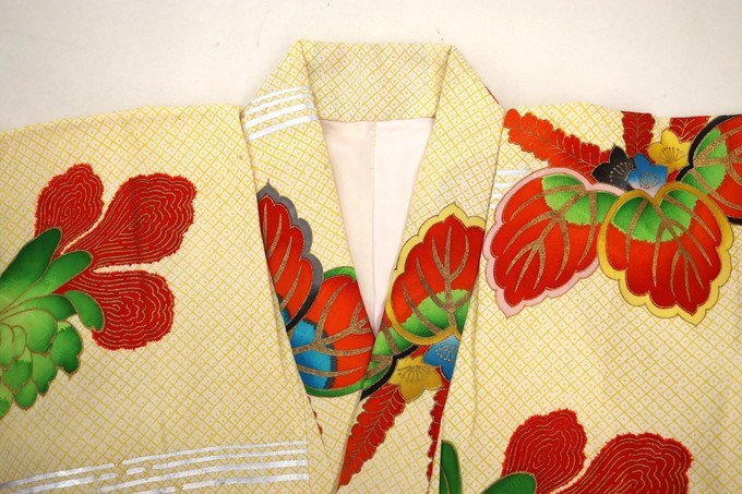 七五三のお祝いや、リメイク用の生地としてご利用ください。 新古品・中古品となりますので、薄い黄変や耳ヤケが見られる商品もあります。 ご自身で難直し・染め直しされる方、多少のシミ・黄変が気にならない方、是非ご入札ください 。 多数出品中 ⇒ 七五三 女児 四つ身 一覧 | |