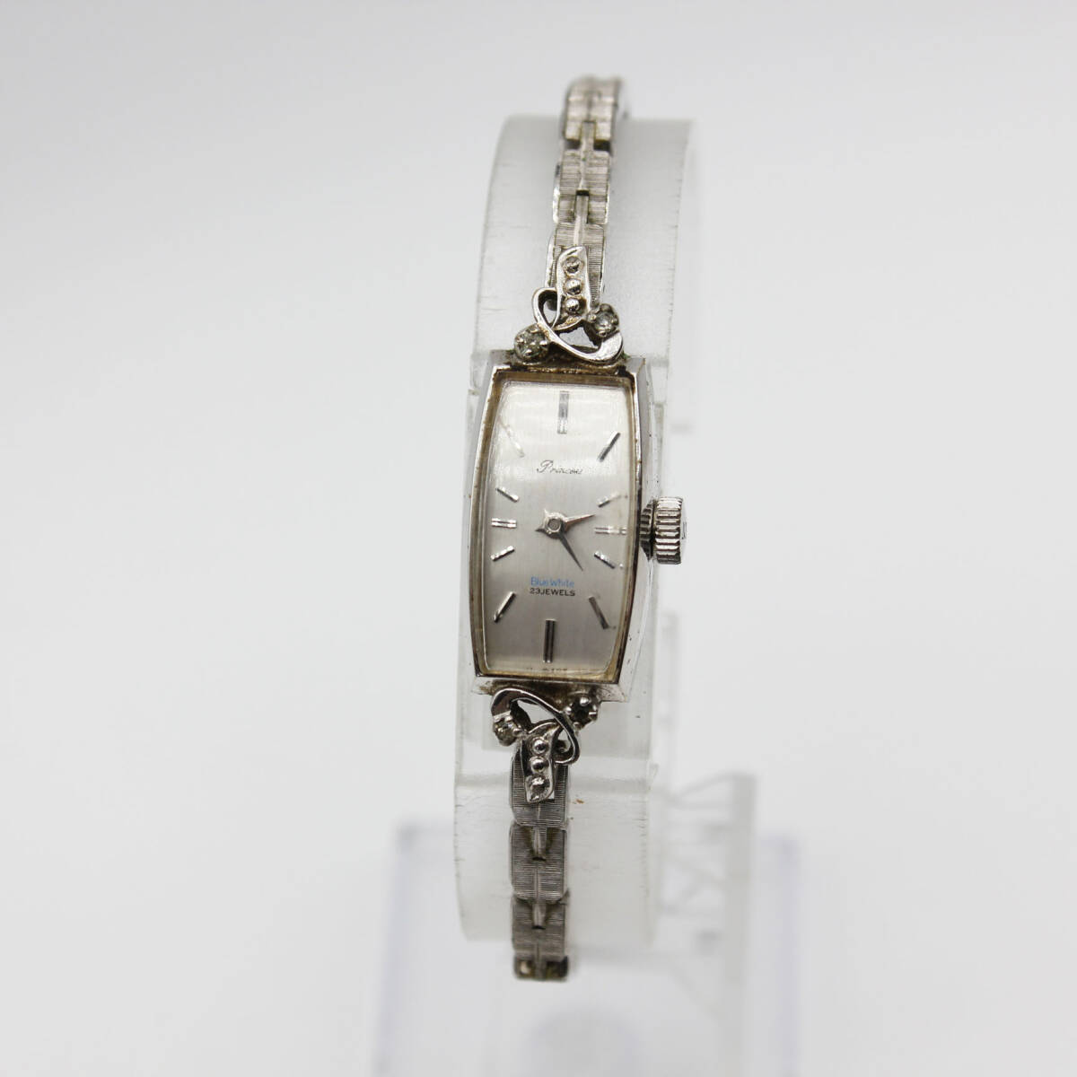 レディース腕時計 手巻き 稼働品 文字盤シルバー スクエア
