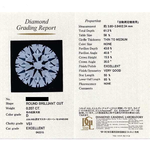 付属品ダイアモンドグレーディングラボラトリー鑑定書(カバーやや汚れあり)・内箱・外箱