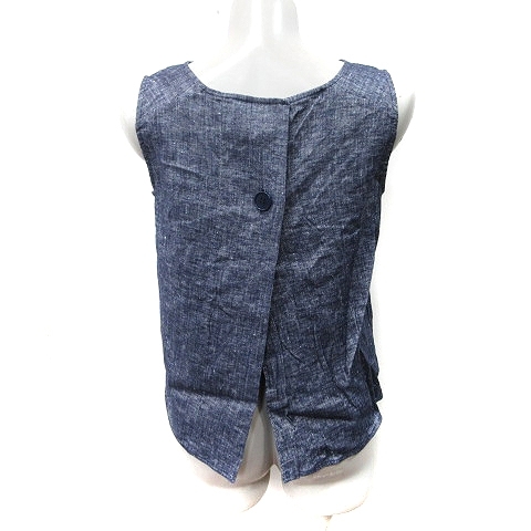 セオリー Theory シャツ ブラウス プルオーバー ノースリーブ 麻 リネン S 紺 ネイビー /YI レディース
