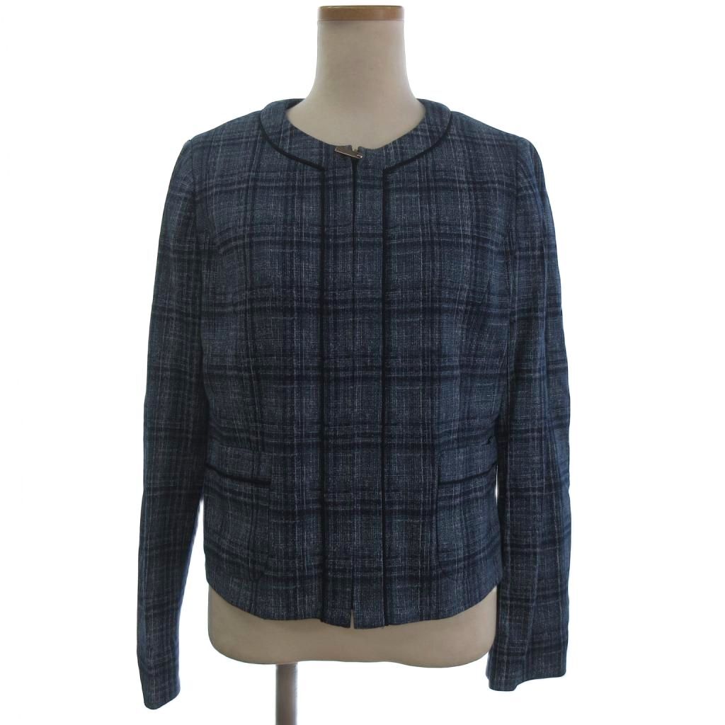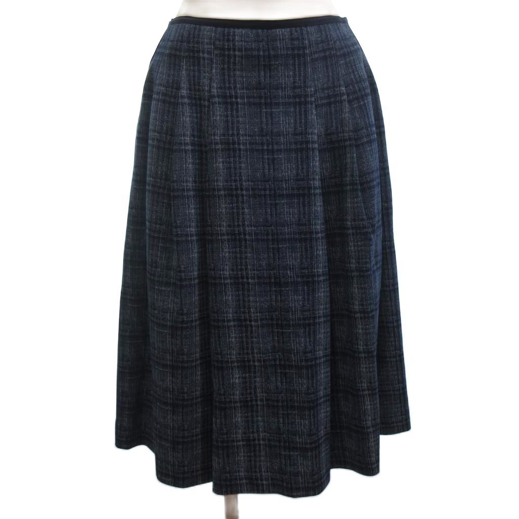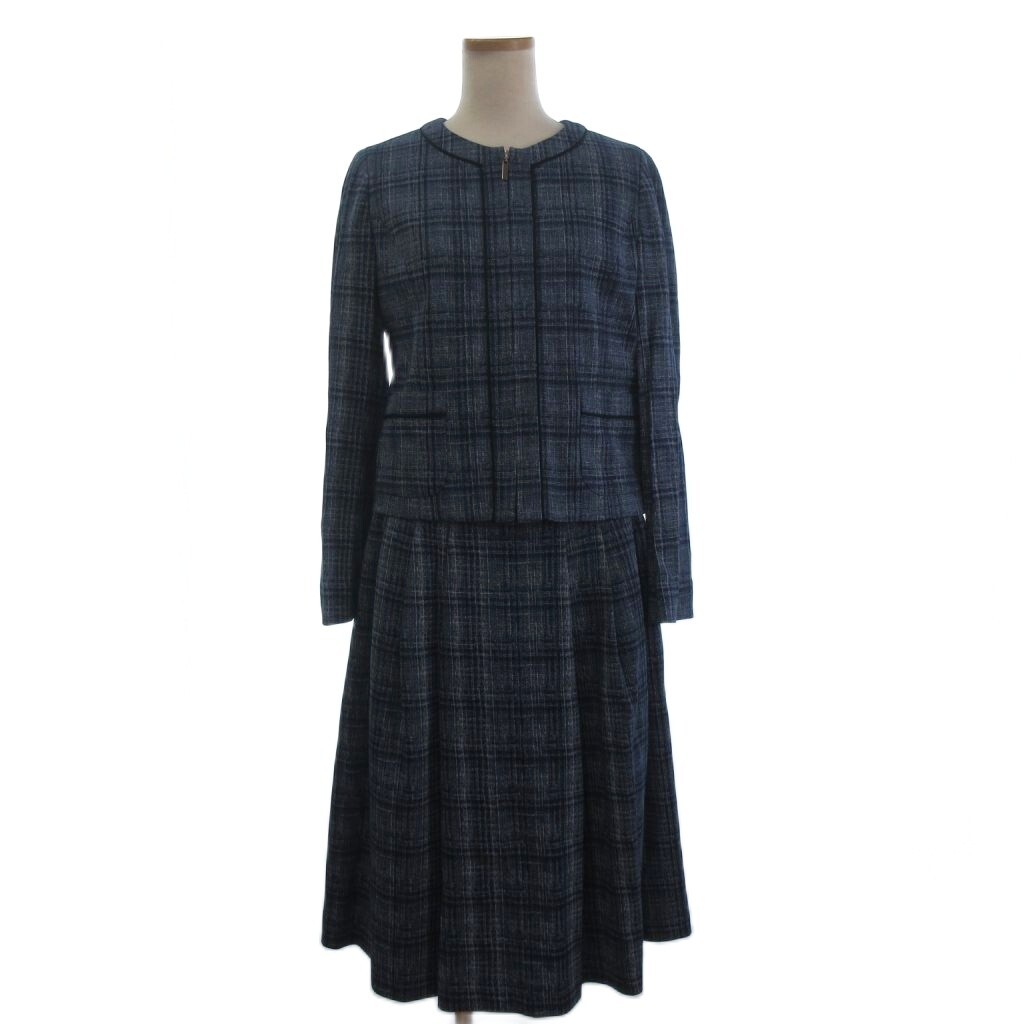 レリアン Leilian 美品 セットアップ スーツ ノーカラー フルジップ スカート ひざ丈 チェック 青 ブルー 11 メンズ