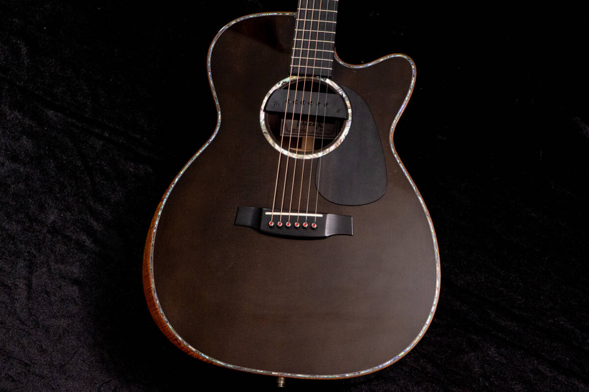 OMスタイル、カッタウェイのデザイン、エルボーコンターとバックコンター等を備えており、アコースティックなサウンドを持ちつつもプレイアビリティの高さも魅力的です。