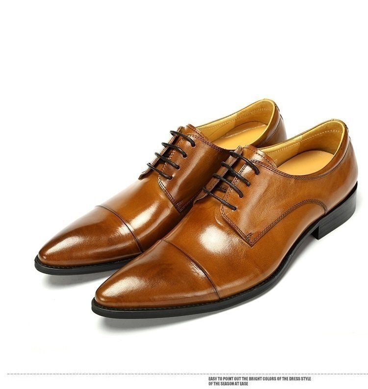 メンズ ビジネス レザー シューズ 本革 紐 ライトブラウン サイズ 25.0cm 革靴 靴 カジュアル 屈曲性 通勤 軽量 新品 【apa-163】