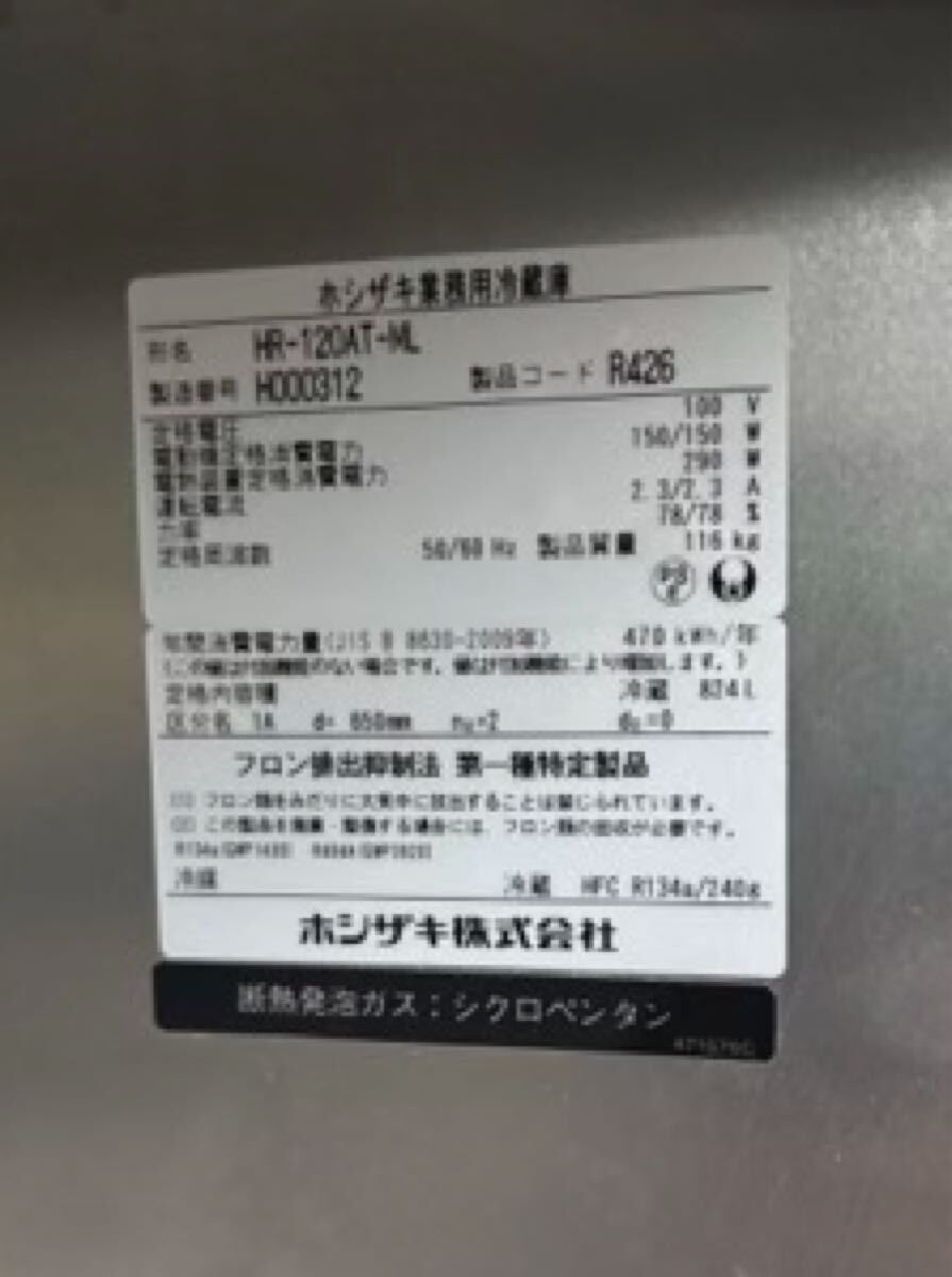 直接お引取り 島根県仁多郡★ホシザキ 業務用冷蔵庫 HR-120AT-ML 100V 50/60Hz 縦型★KAC1349 | |
