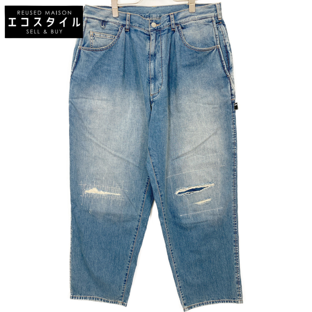 BROCHURE ブローシュア 25SS 251-04 インディゴ コットン ジップフライ リペアデニムパンツ インディゴ L ボトムス デニム メンズ 中古