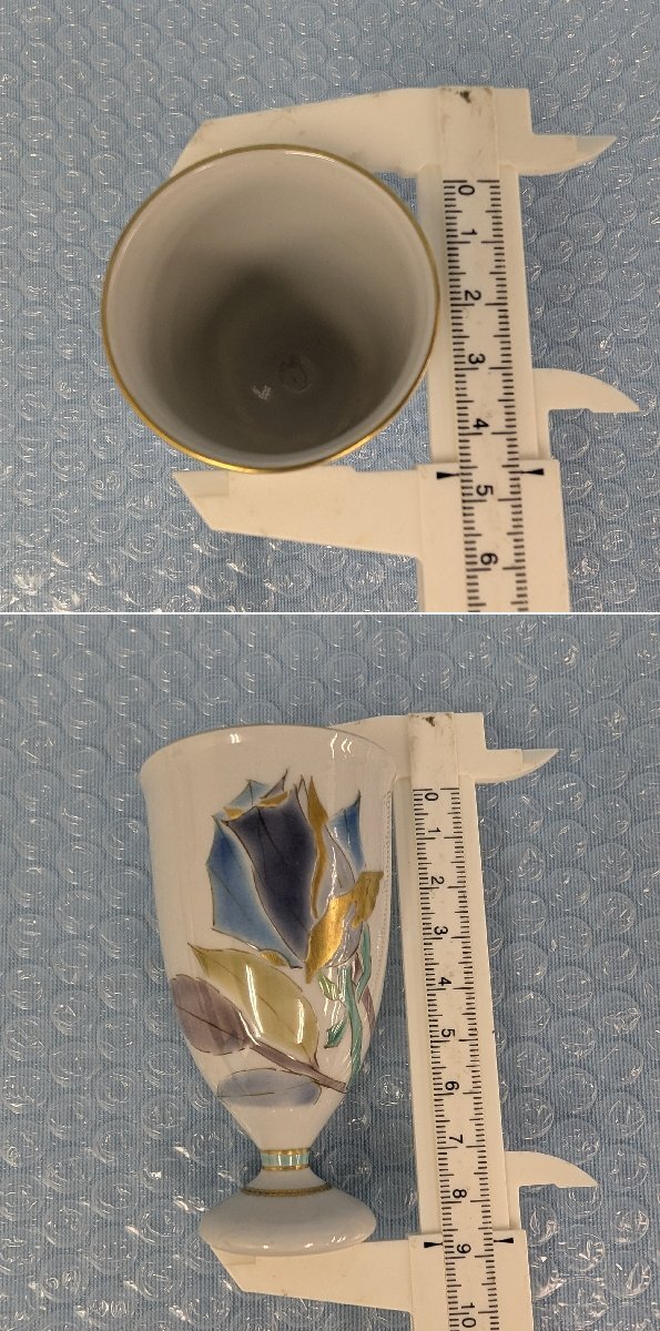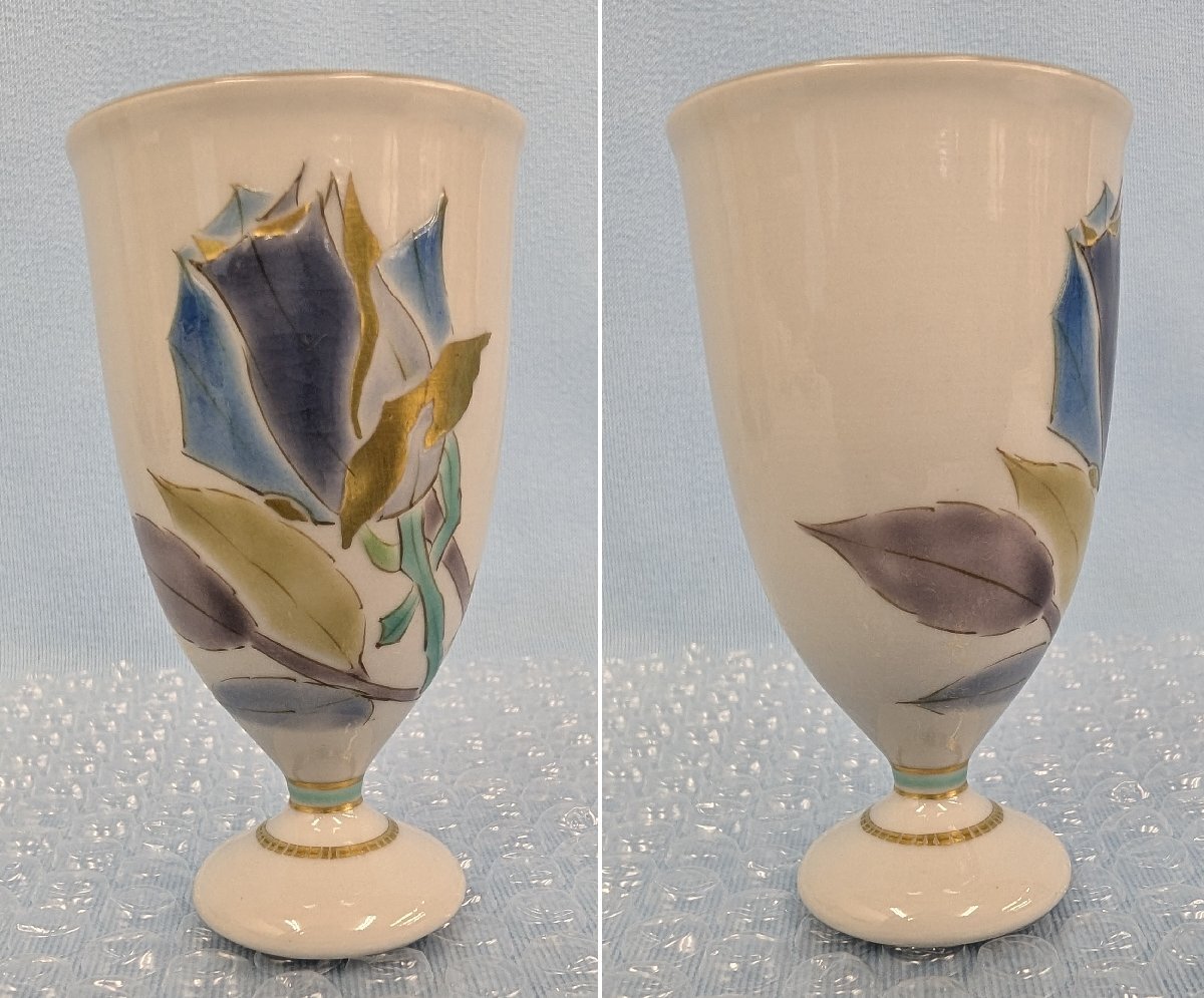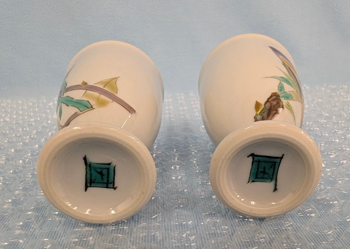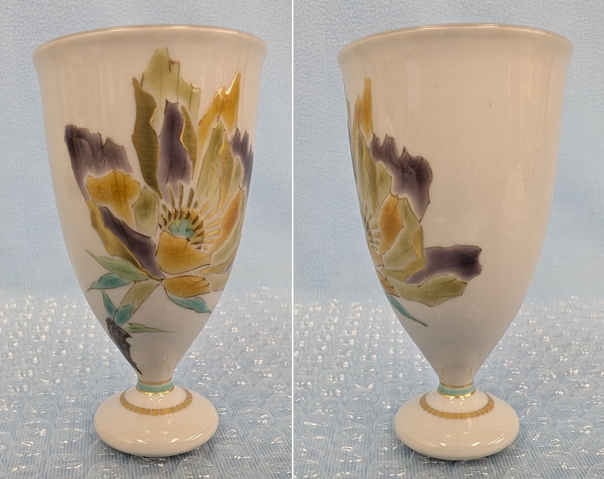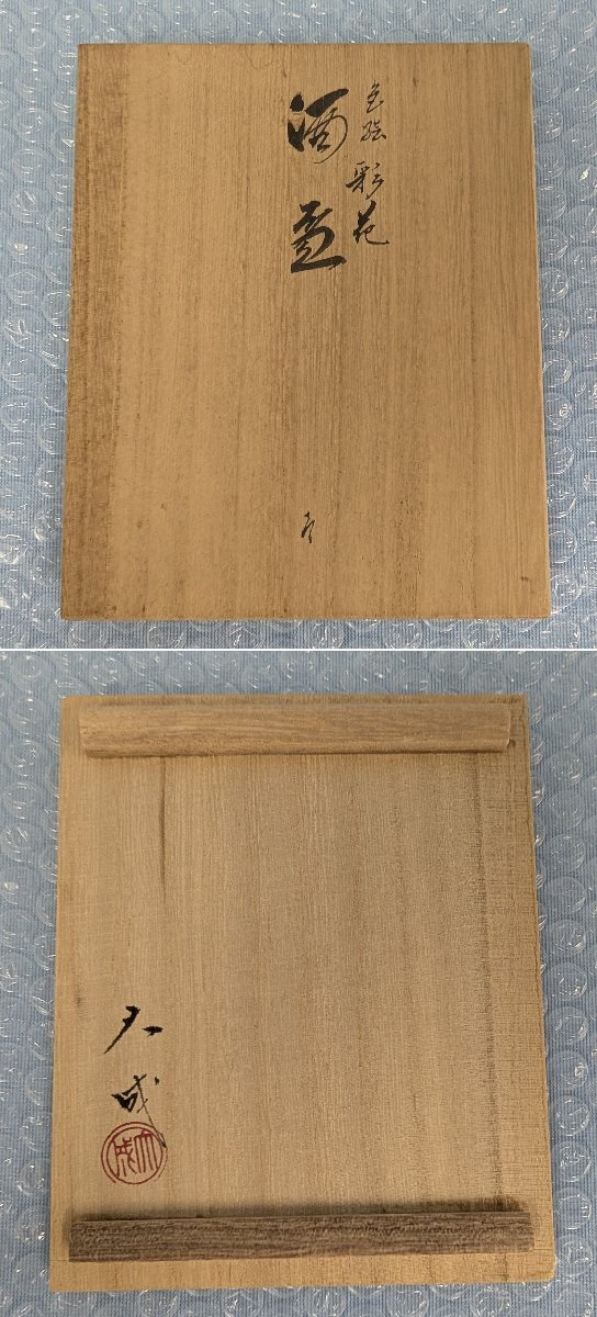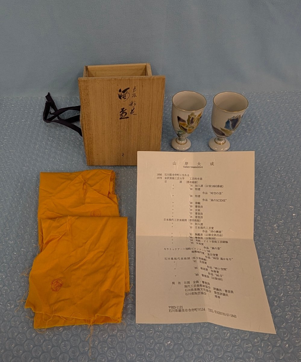 九谷焼 山岸大成 色絵彩花 酒盃 酒器 酒杯 リキュール杯 共箱 共箱 共布/長期保管品