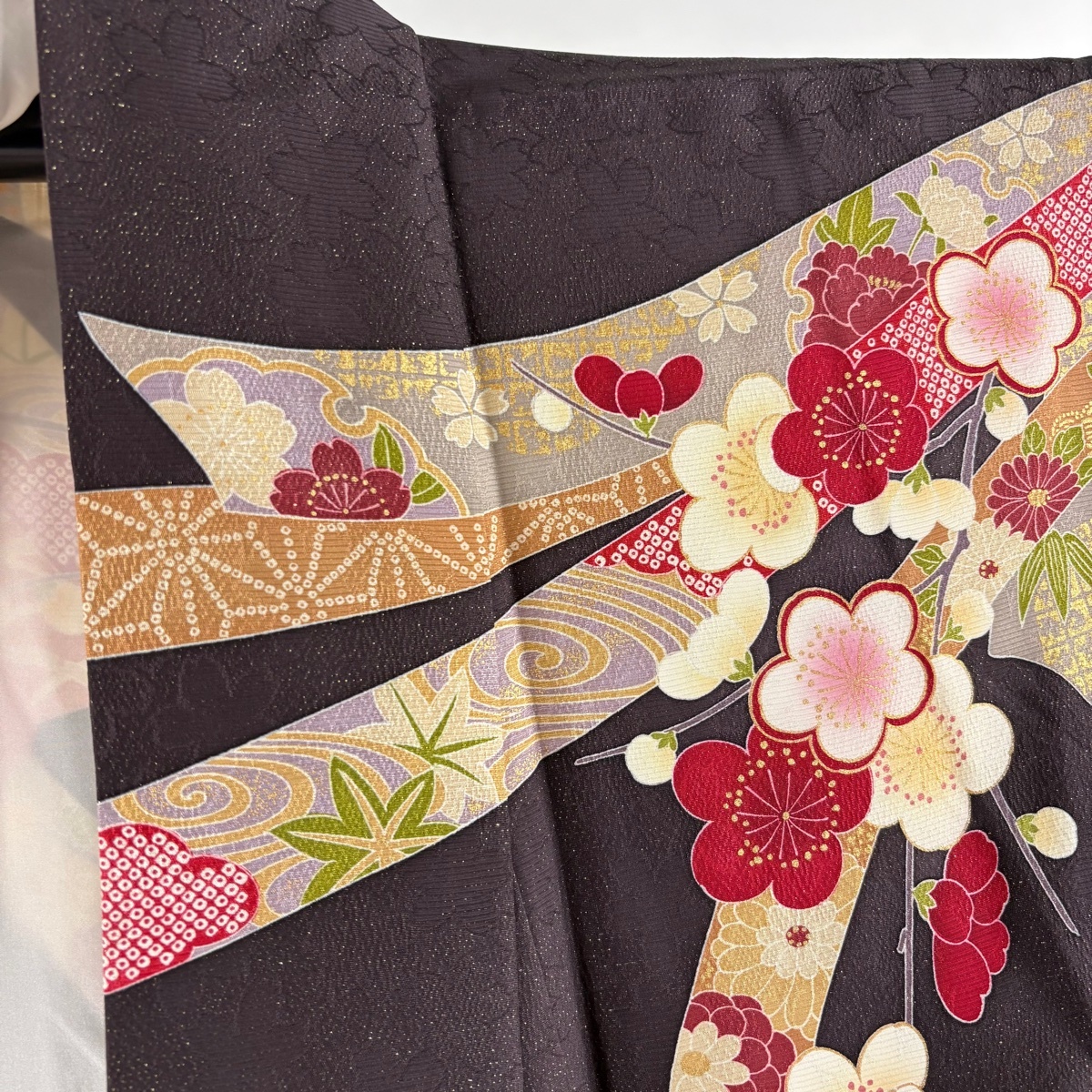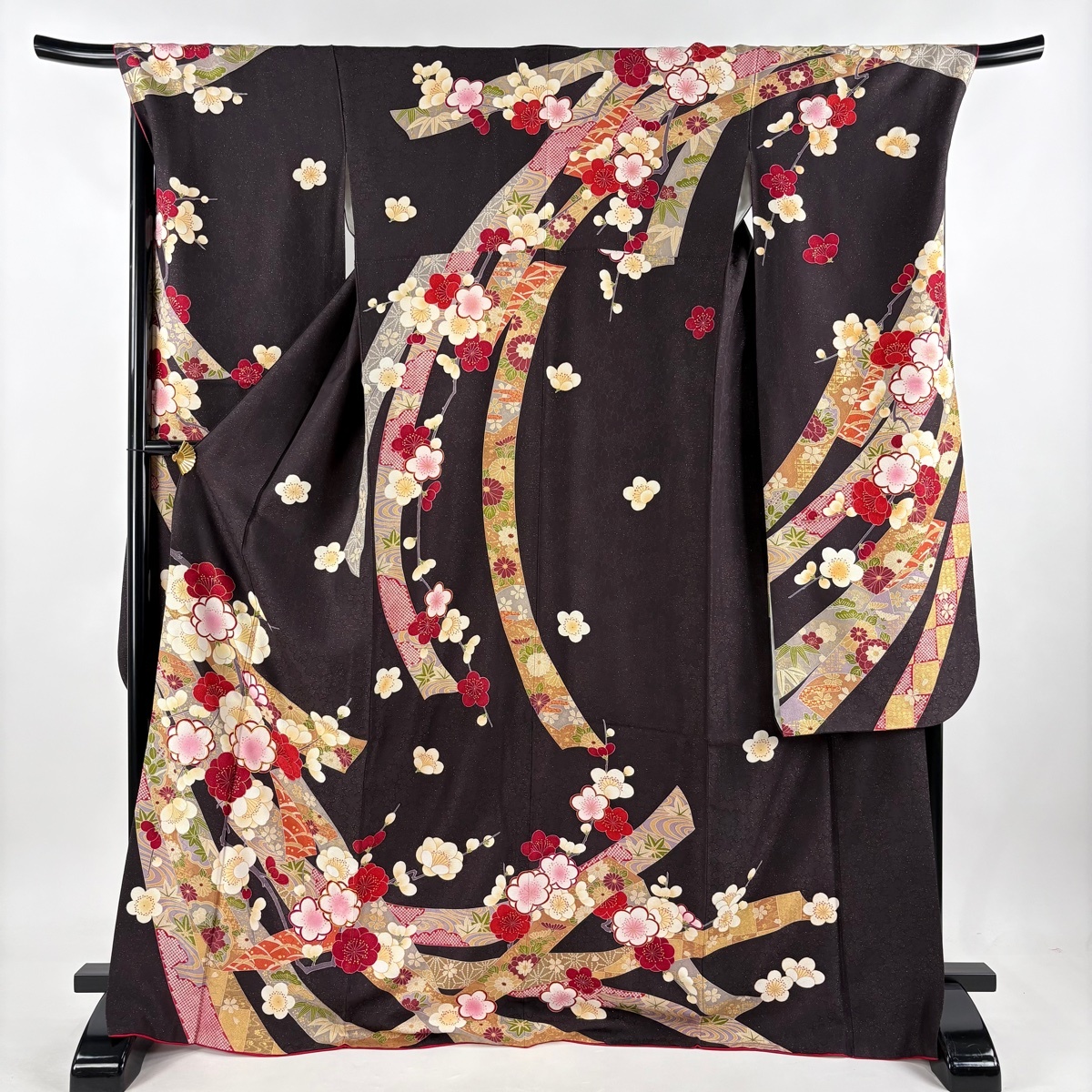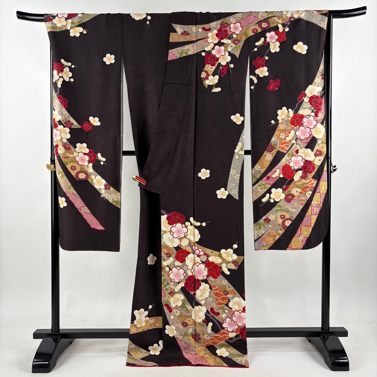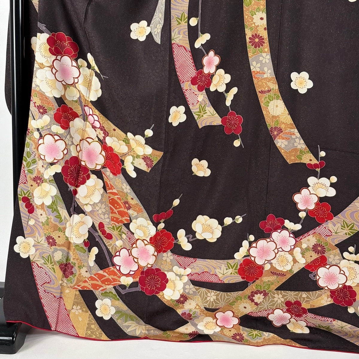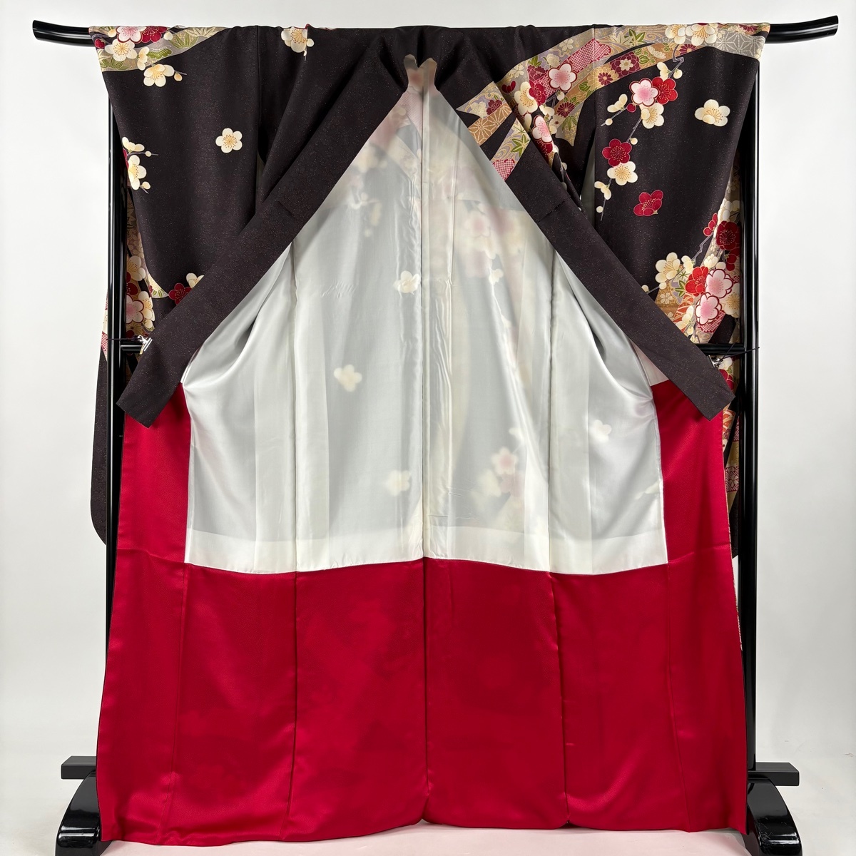 振袖 逸品 熨斗 枝梅 金通し 金糸 茶紫 袷 身丈171 裄丈70 L 正絹 【中古】 |