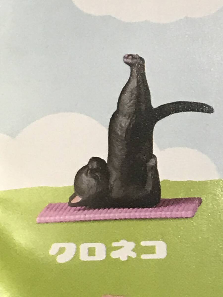 ガチャ「ヨガの時間2 佐藤邦雄の動物たち」のクロネコ。内容未開封の商品とリーフレットです。カプセルは付きません。
