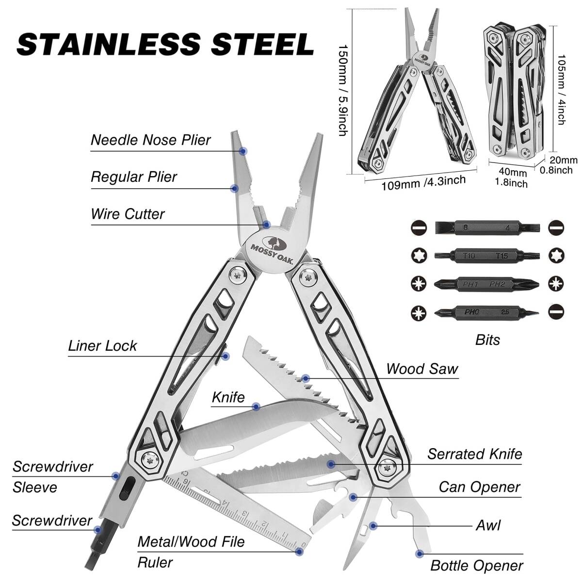 MOSSY OAK 多機能ペンチ バネ付き 21-in-1 アウトドアマルチツール アウトドアナイフ ペンチ プライヤー ワイヤーカッター