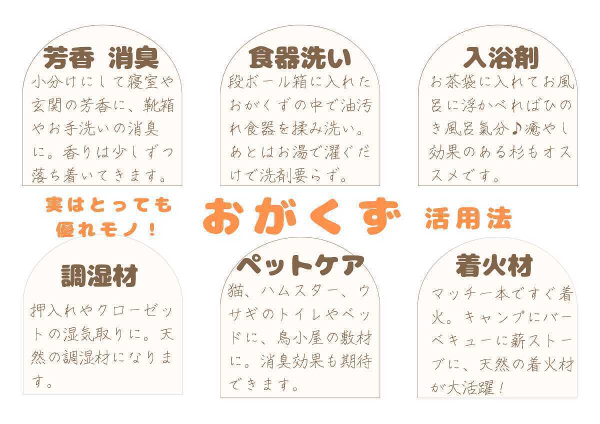○材質:杉、桧ミックス(無垢材のおがくず)
