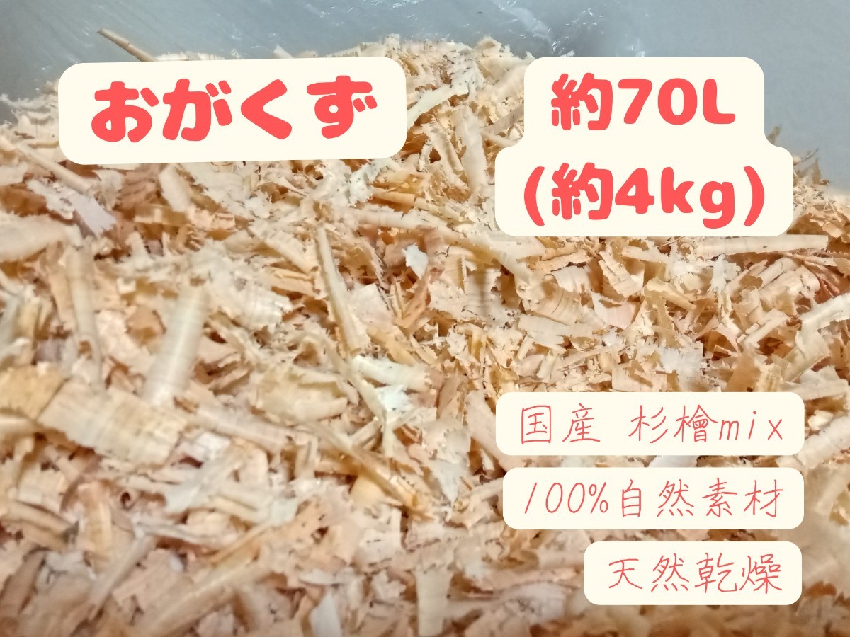 国産の間伐材の杉・桧を加工した際に出るおが屑(カンナ屑)です。