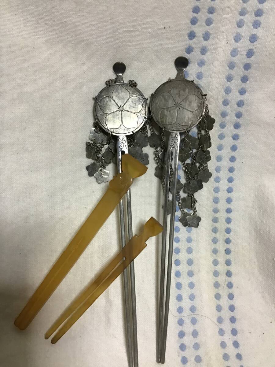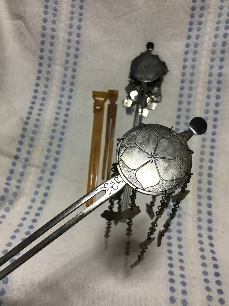 大正時代の銀のかんざし及び鼈甲のかんざし