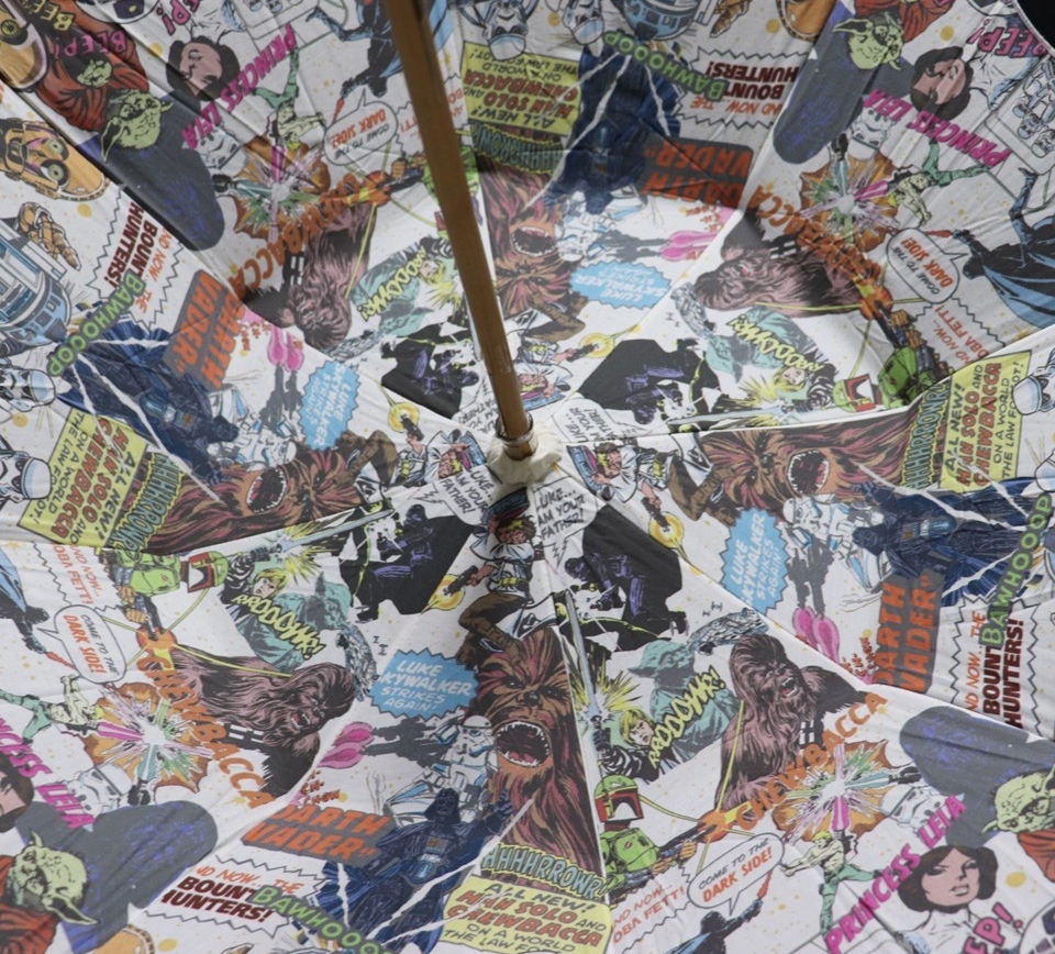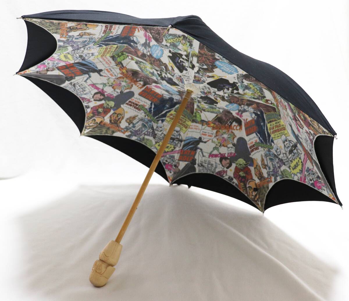 | 《STAR WARS スターウォーズ》新品 希少デザイン アメコミ風プリント ダースベイダー木彫り持ち手 晴雨兼用長傘 日傘 雨傘 男女兼用 S2086 |