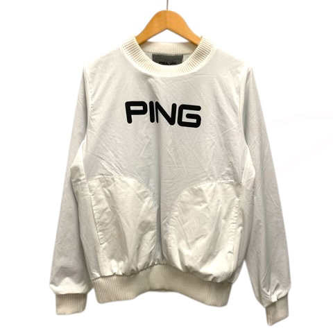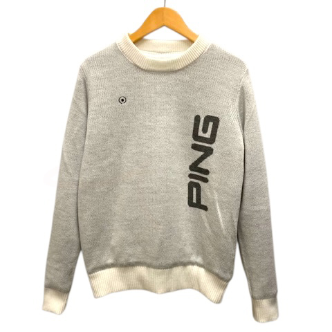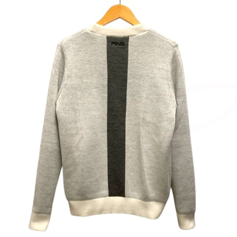 PING ピン ブルゾン ゴルフウェア リバーシブルスニード ニット クルーネック ロゴ 長袖 S グレー 白 ホワイト レディース