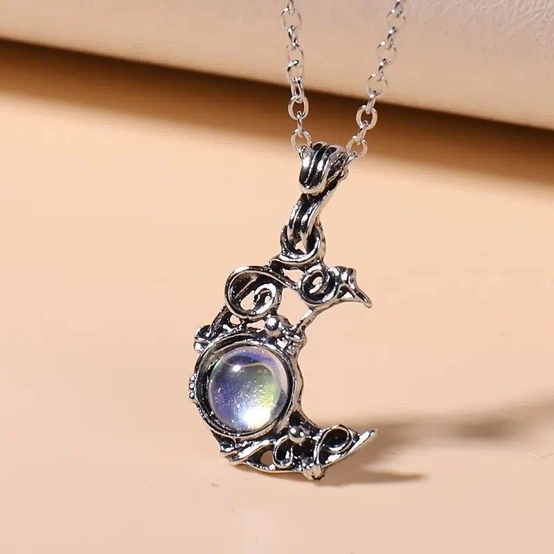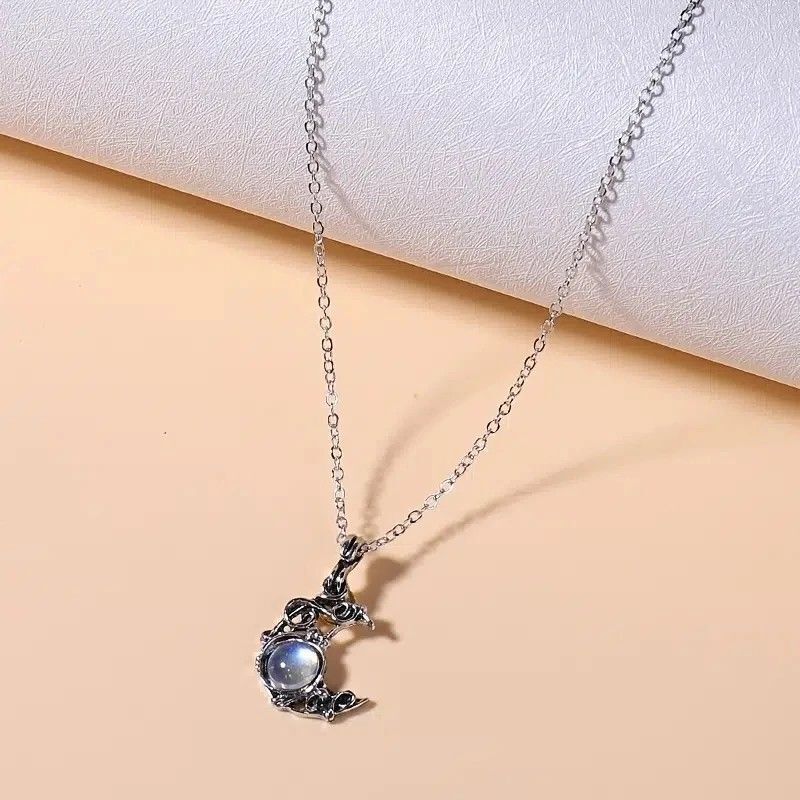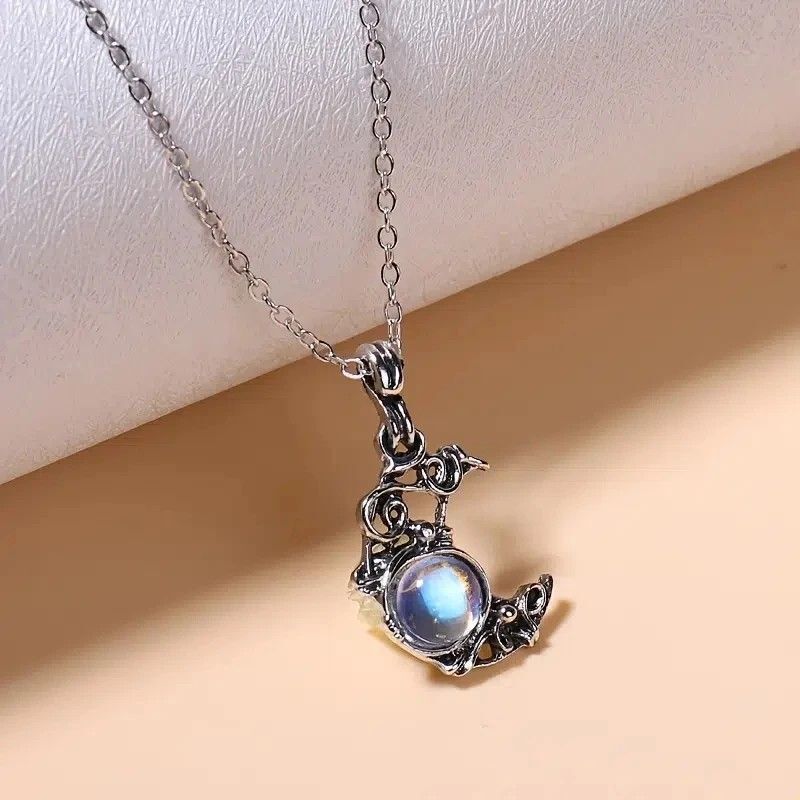 レトロな風合いが魅力の、ムーンストーン風ペンダントネックレス。