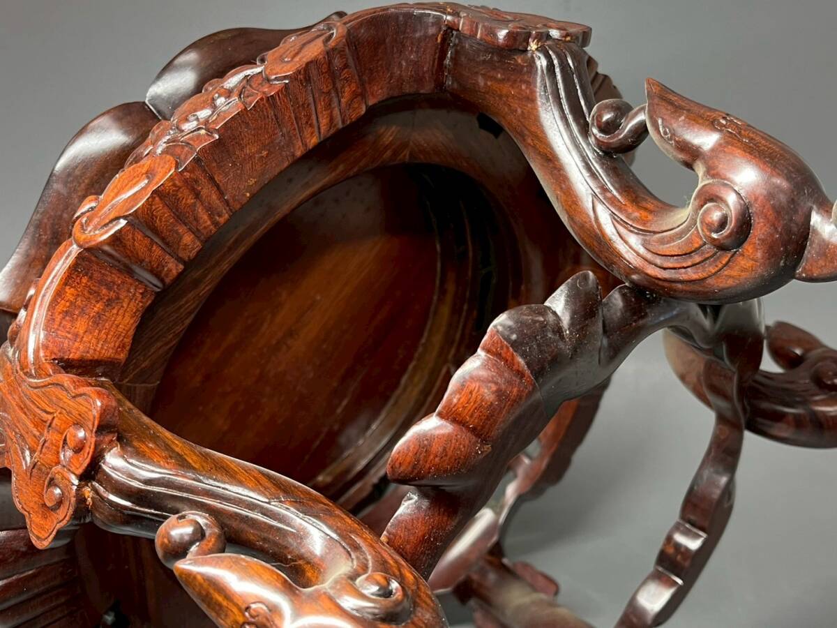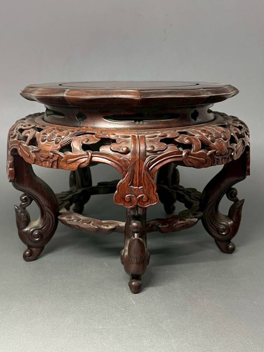 ●中国古玩 花梨 透かし龍彫丸花台 香炉台 盆栽台 飾台 細密彫刻 唐物 時代 骨董 古美術品 置物 飾物 日本伝統工芸品 ■サイズ:直径 27cm/高さ 20cm ※素人寸法の為、若干の誤差はご了承ください。 ■状態につきましては経年に伴うスレ・汚れ・小キズ などが見られます。 ※その他の細かな状態は写真にてご確認・ご了承の上 ご入札くださいませ。 ●こちらの商品などは時代物や古いお品・骨董品となり ますので、細かな状態を気にされる方・神経質な方の ご入札はご遠慮くださいませ。 |