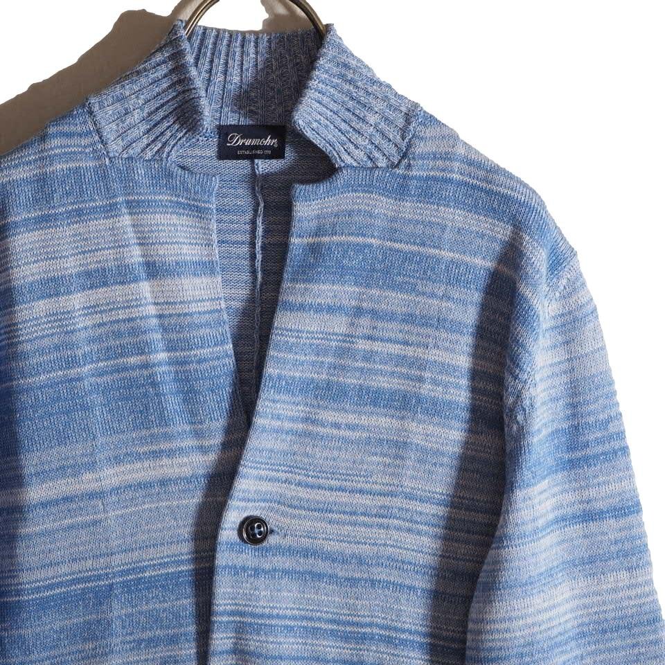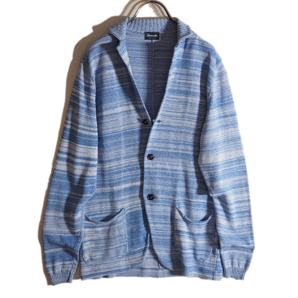 P4615z6 ■Drumohr ドルモア■ イタリア製 コットンニット カーディガン ボーダー ブルー 44 / メンズ サマーニット 春夏