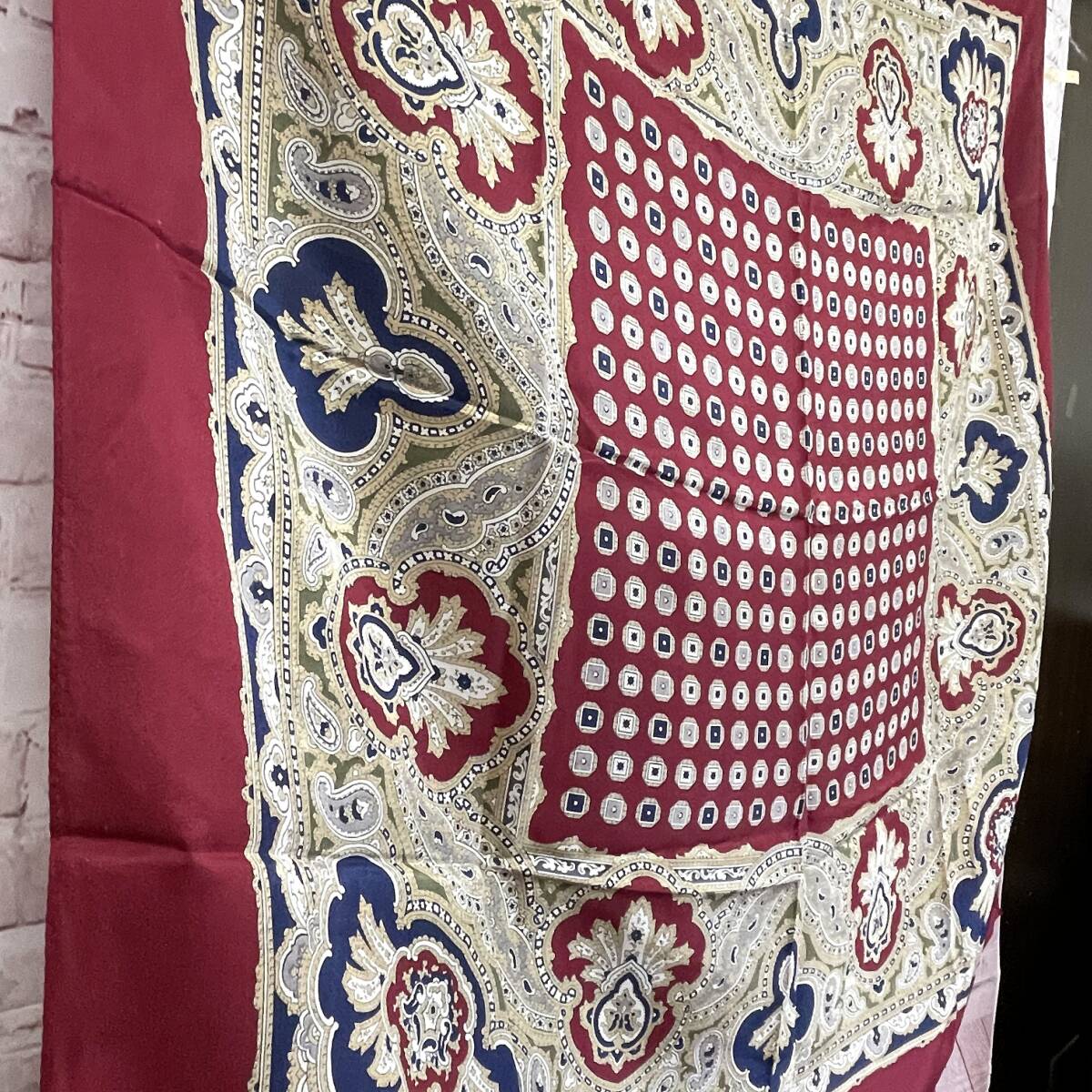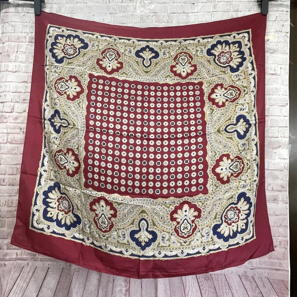 大判 スカーフ バンダナ レッド×ネイビー ペイズリー柄 ドット シルク100% エレガント ラグジュアリー