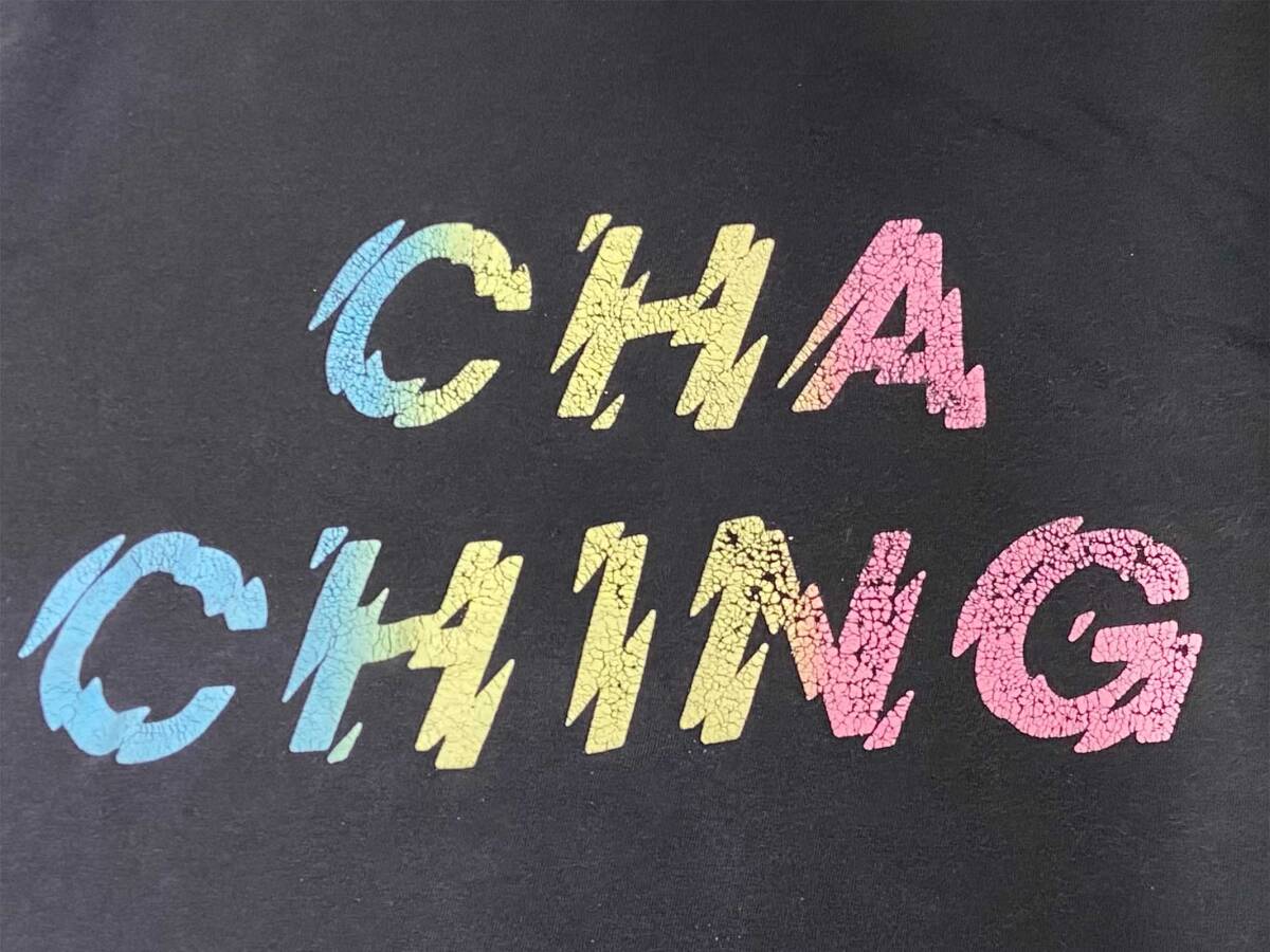 ★CHA CHING はスラングで「チャリン!」(チャチン)お金がレジスターに入る際の音を表現しており、俗に「儲かった」などの意味で使われます 色はブラック 100%COTTON シングルステッチ