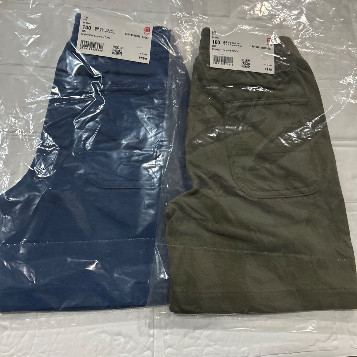 100『ユニクロ』ジャージーショートパンツ 2点セット/ブルー・オリーブ
