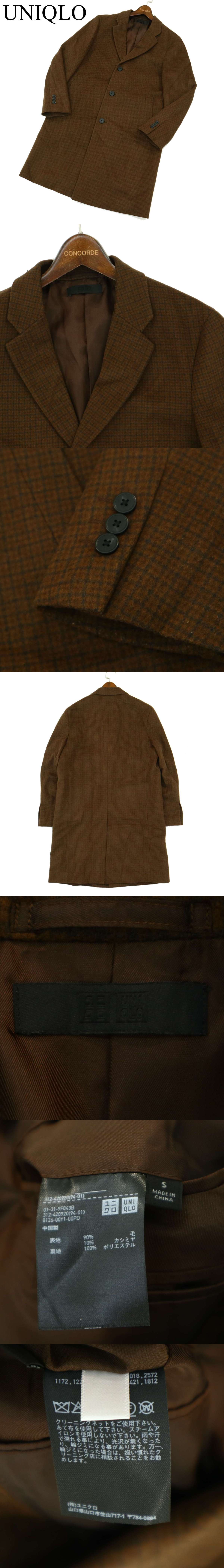 UNIQLO ユニクロ 秋冬 ガンクラブ チェック★ ウール カシミヤ チェスター コート Sz.S メンズ