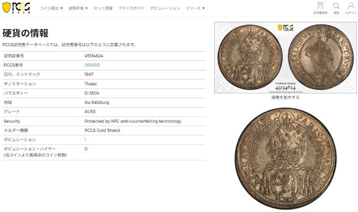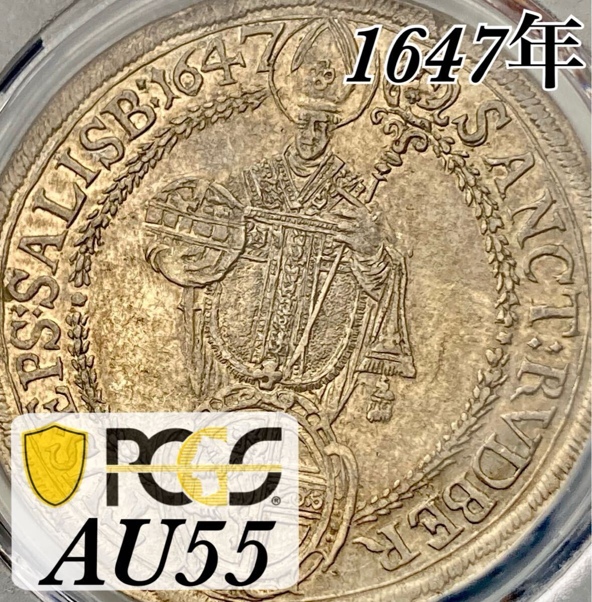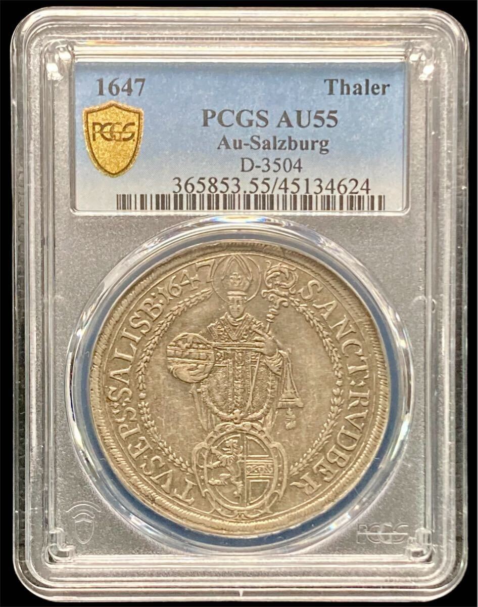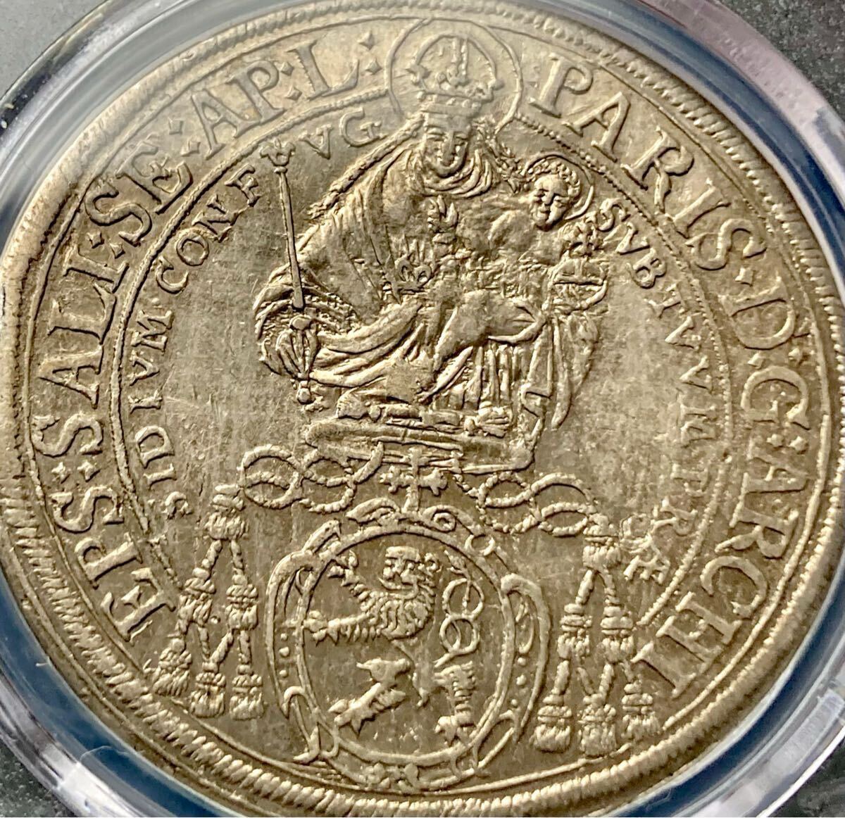 【世界に1枚の最高鑑定】1647年 オーストリア ザルツブルク 大司教領 マドンナ ターラー銀貨 PCGS AU55 マリア アンティークコイン 古銭