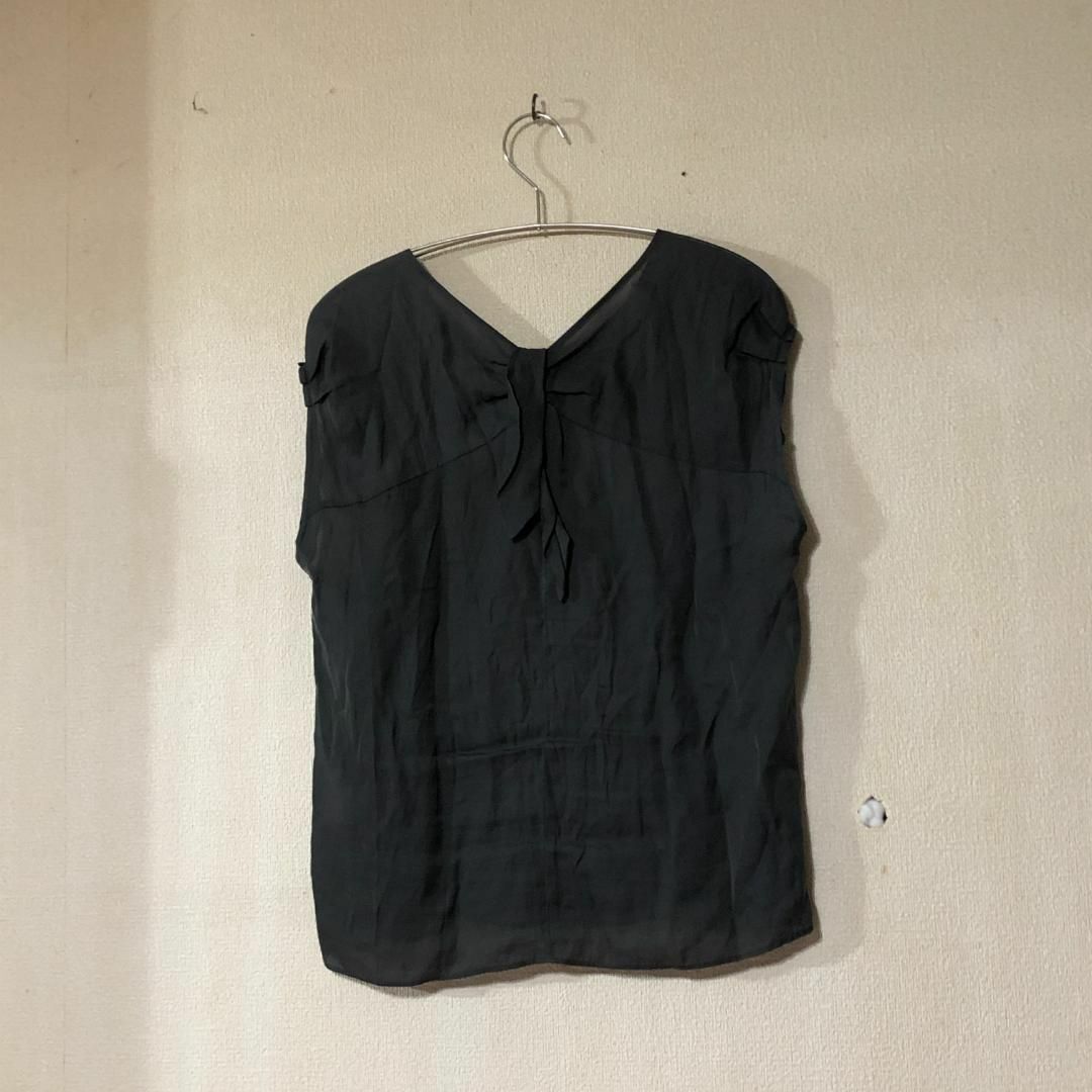 上品なチャコールグレー(またはダークグレー)のノースリーブトップスです。