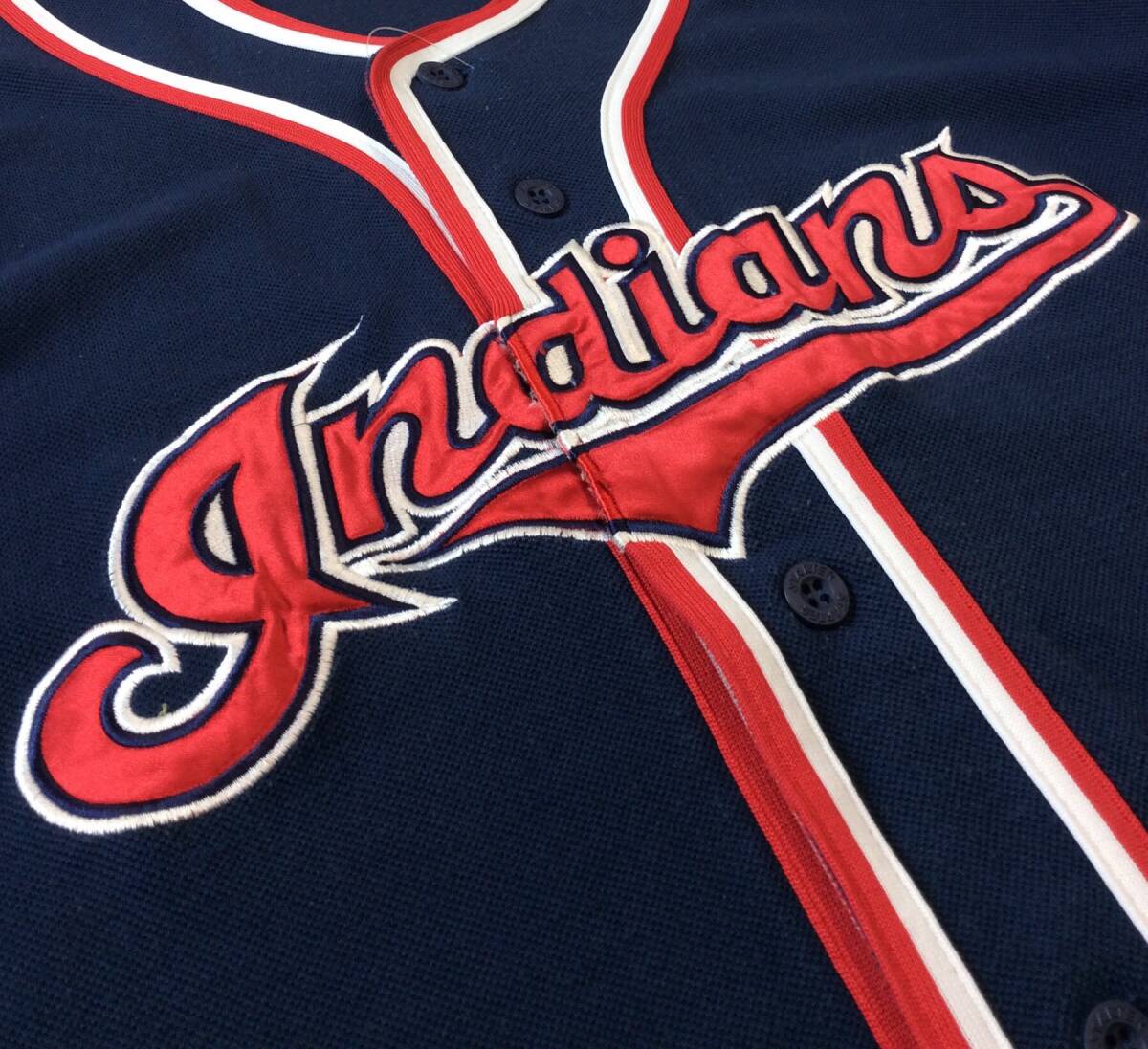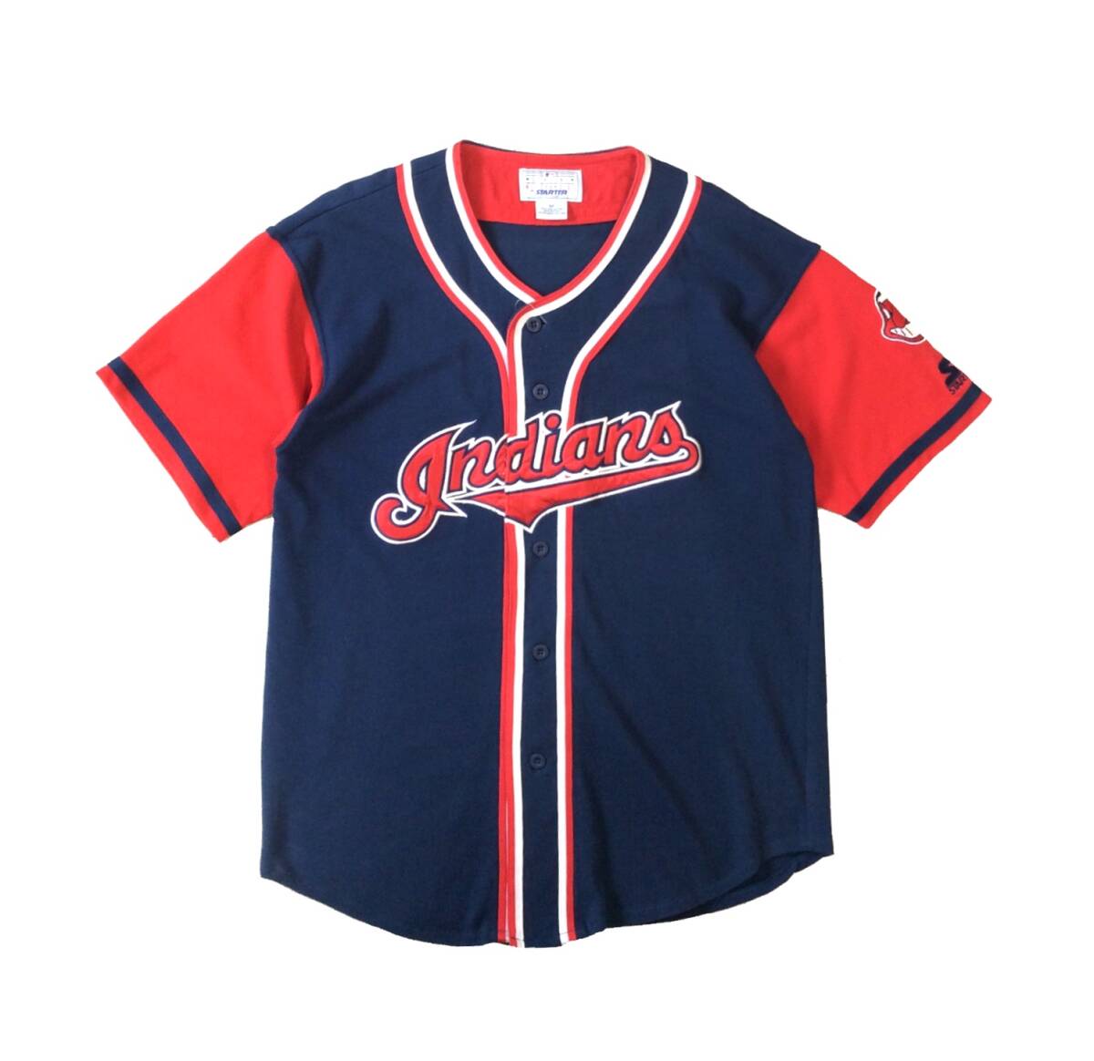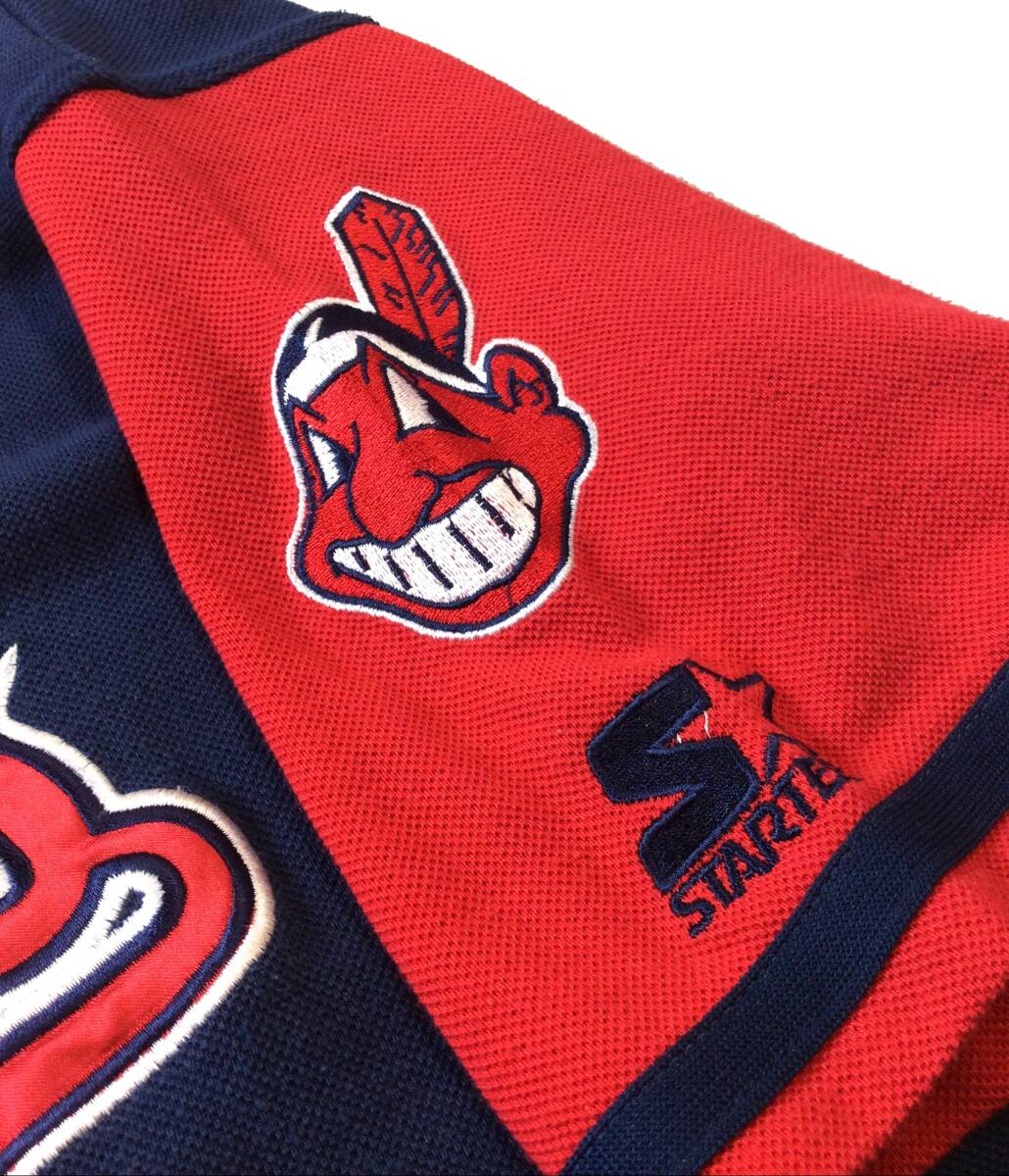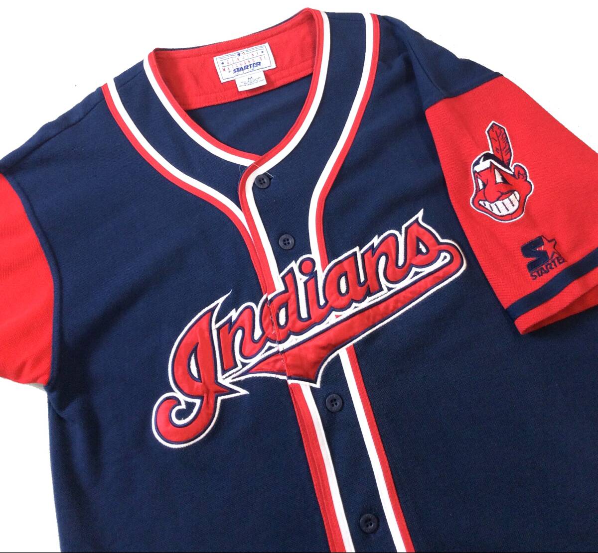 90s Vintage STARTER スターター INDIANS インデアンス Guardians ベースボールシャツ 半袖 ユニフォーム ネイビー/レッド メンズ M