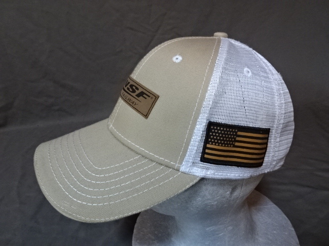 激レア USA購入 アメリカ企業モノ テキサス州 貨物鉄道会社【BNSF RAILWAY】アメリカ星条旗 ロゴワッペン付 メッシュキャップ 中古良品