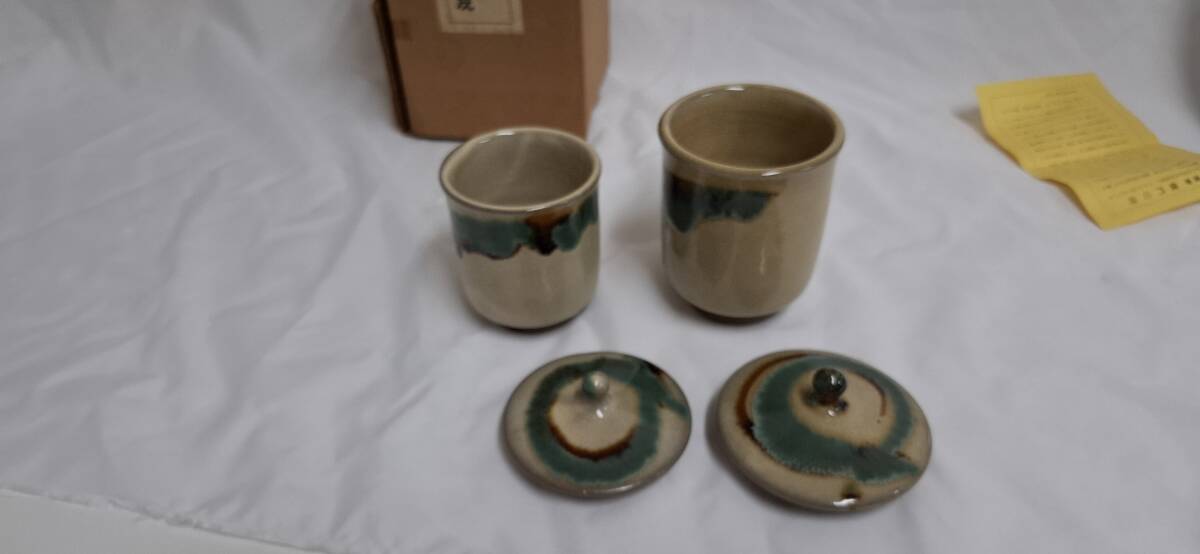 【貴重】鹿児島県指定無形文化財 龍門寺焼 湯呑セット 2個 夫婦 茶碗