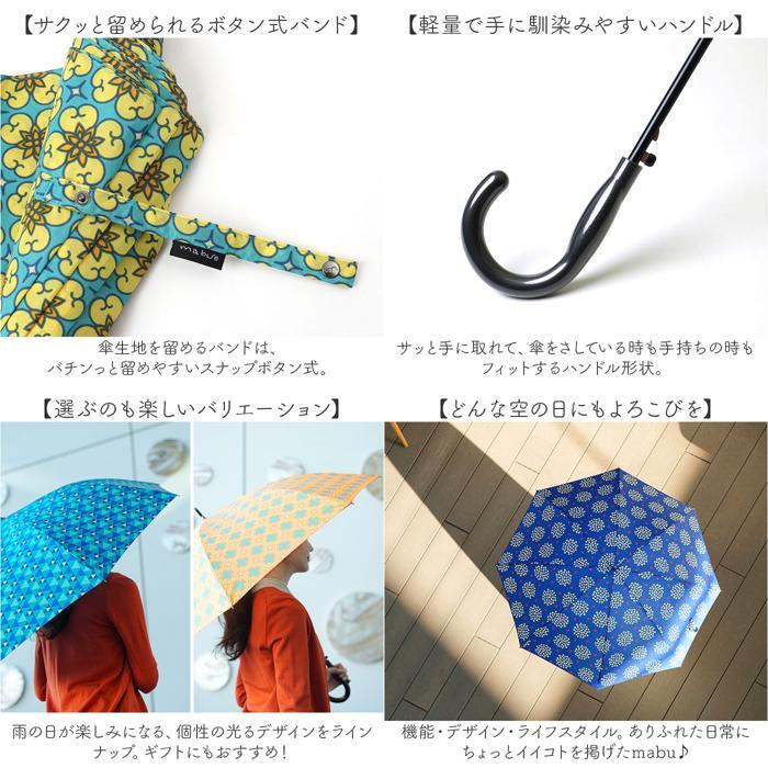 | 商品説明 | ・・【おしゃれに持ち歩けて機能的】 ・雨の日も思い切り傘を広げよう♪快適に使えるmabu ジャンプライト voyage8本骨。 ・【世界の国をイメージしたシリーズ】 ・カラフルなテキスタイルが、旅をするようなワクワク感を演出☆憂鬱な雨の日も楽しくお出かけ! ・【ワンタッチでラクラクオープン】 ・片手でサッと開きやすいジャンプ式。荷物を持っている時も、スマートに開ける◎ ・【しなやかで丈夫なグラスファイバー】 ・親骨の一部は、弾力性のある素材。折れにくいのに、使い心地は軽やか。 ・【日傘としても使える万能アイテム】 ・紫外線遮蔽率90%以上!日差しからお肌を守れて、晴れの日にも重宝。 ・【サクッと留められるボタン式バンド】 ・傘生地を留めるバンドは、バチンっと留めやすいスナップボタン式。 ・【軽量で手に馴染みやすいハンドル】 ・サッと手に取れて、傘をさしている時も手持ちの時もフィットするハンドル形状。 ・【選ぶのも楽しいバリエーション】 ・雨の日が楽しみになる、個性の光るデザインをラインナップ。ギフトにもおすすめ! ・【どんな空の日にもよろこびを】 ・機能・デザイン・ライフスタイル。ありふれた日常にちょっとイイコトを掲げたmabu♪ |